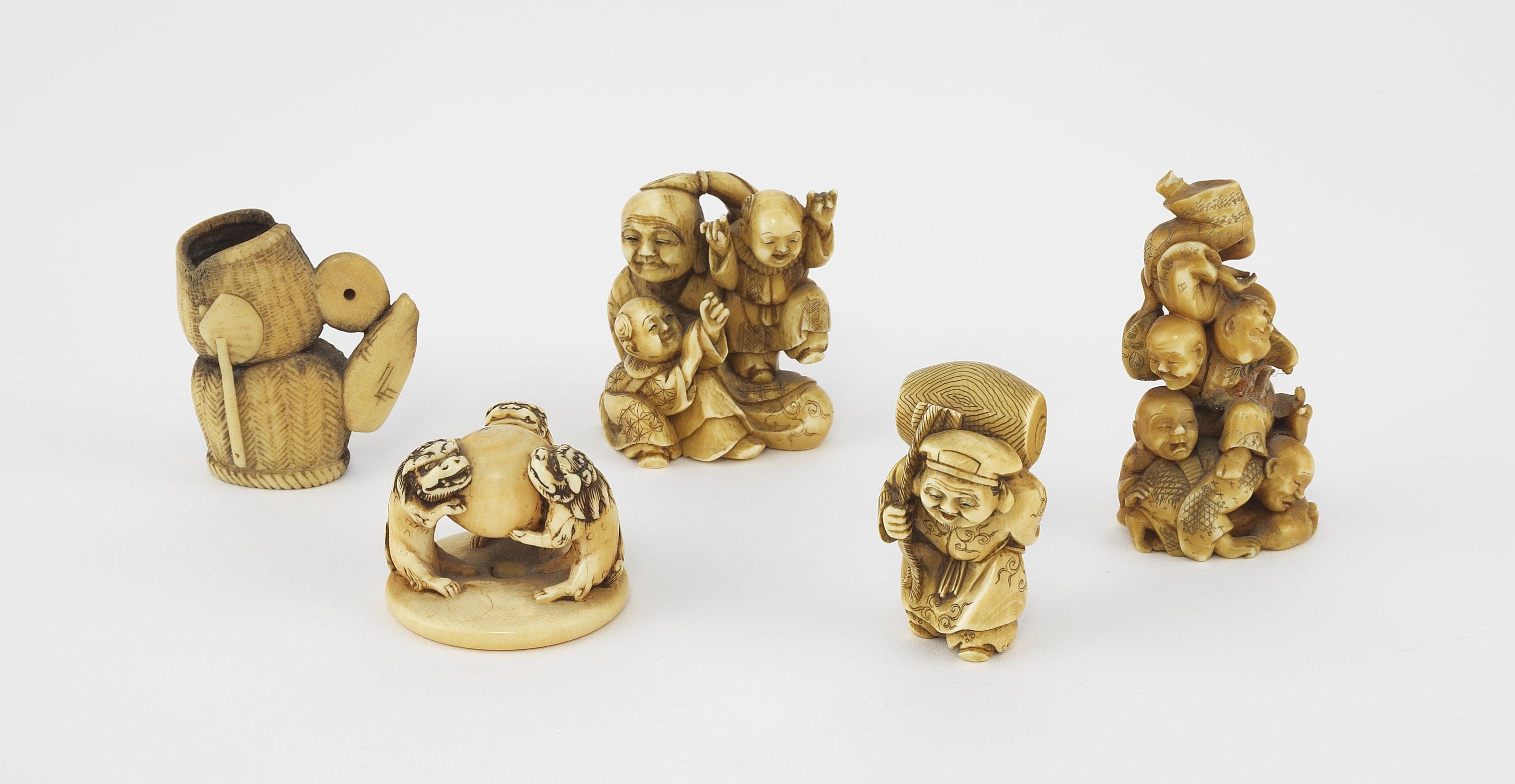 4752. Cinq netsuke figurant des personnages, Japon, circa 1900