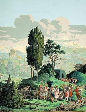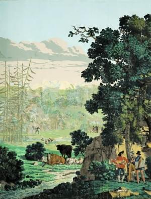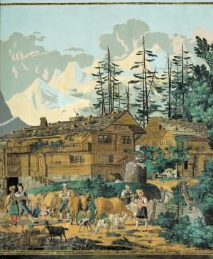 Paysages suisses animés, pochoirs sur papier, de 209x92 cm à 334,5x200 cm