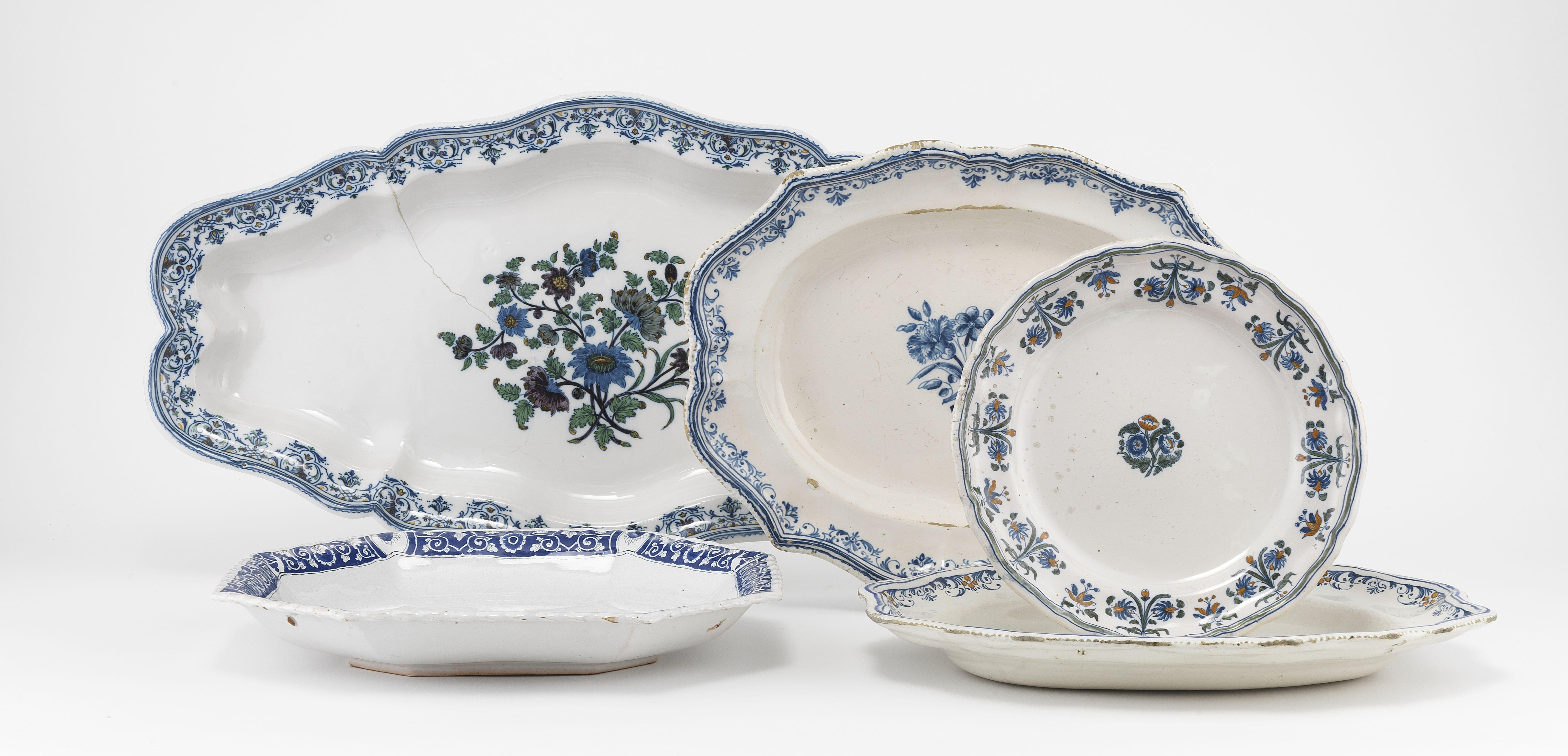 Comprenant: 3 assiettes (N°132,158 et 240), 2 plats ronds (N°1 e...