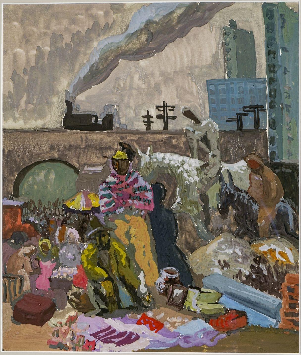 Course cycliste, gouache, signée et datée 48, 32x25 cm