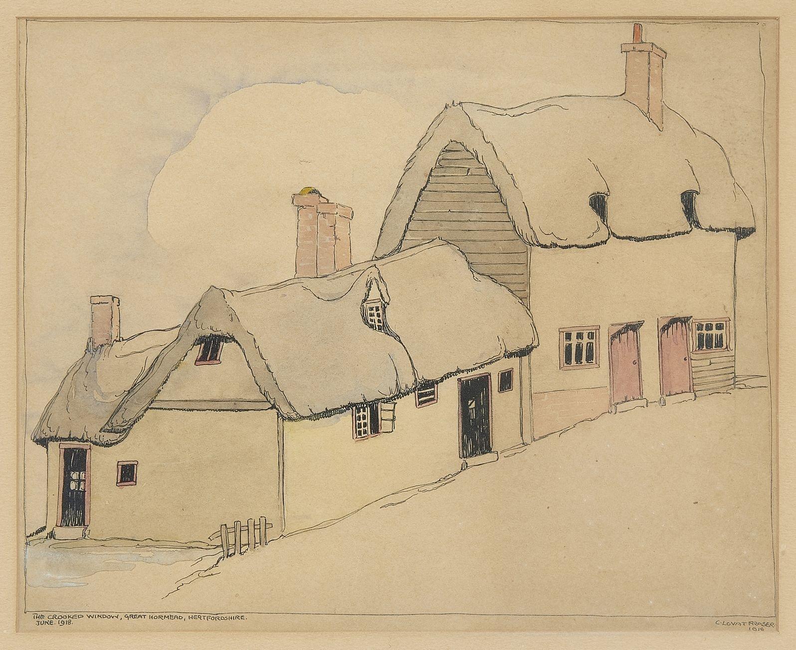 Chaumière, The Crooked window, Great Hormead, Hertfordshire, encre et aquarelle sur papier, signée et datée 1918, 21x26 cm