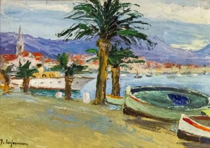 Vue de Sanary, huile sur carton, signée, titrée et située au dos...