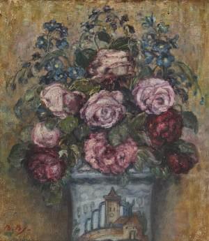 Paire d'arrangements floraux, deux huiles sur panneaux, signées,...