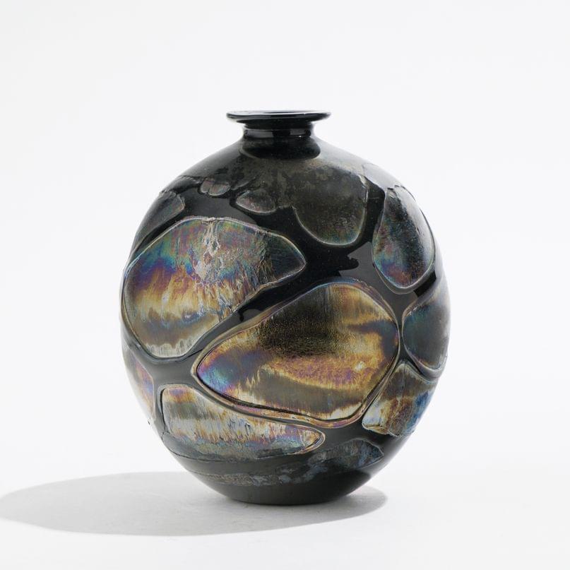 Vase piriforme, Murano circa 1980, verre à marbrures bleues et v...