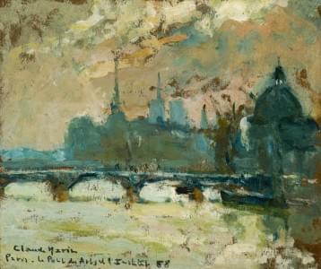 Paris-Le pont des Arts, huile sur carton, signée et datée 58, 33...