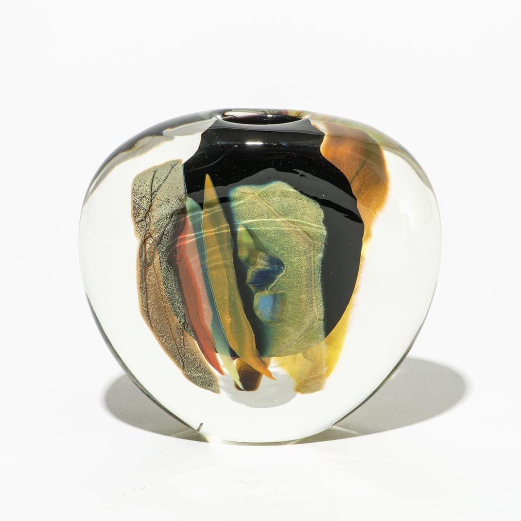 Vase à sections triangulaires, verre marbré, signé et daté 89, H...