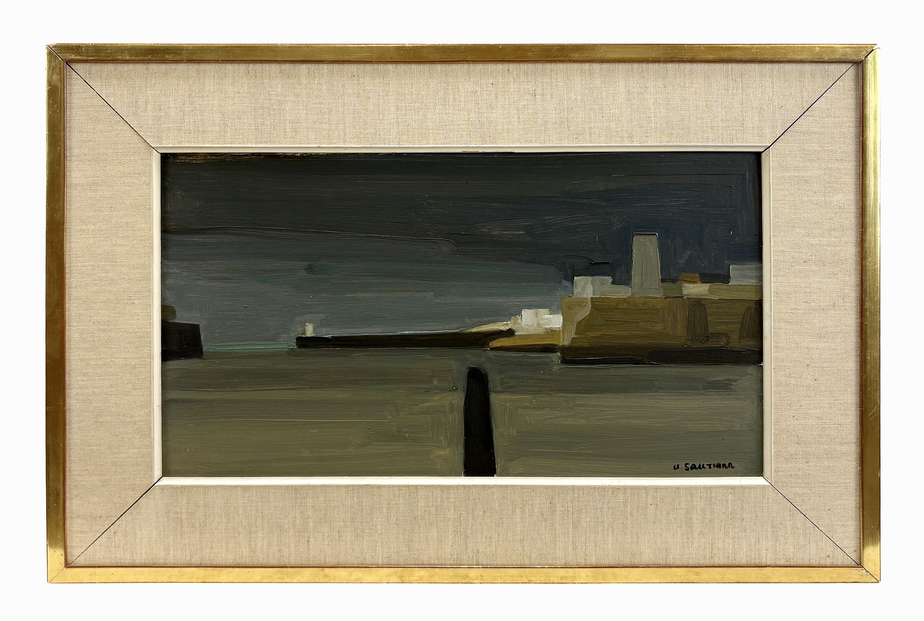 Vue du port de Grimaud, huile sur isorel, signée, 38,5x55,5 cm