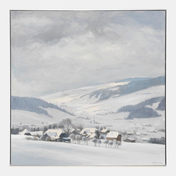 Hirsegg, huile sur toile, signée, 80x80 cm