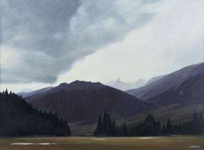 Paysage montagneux, huile sur panneau, signée, 57x77 cm
