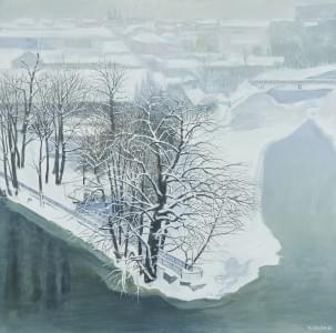 Paysage de neige à la Jonction, huile sur toile, signée, 77x77 c...