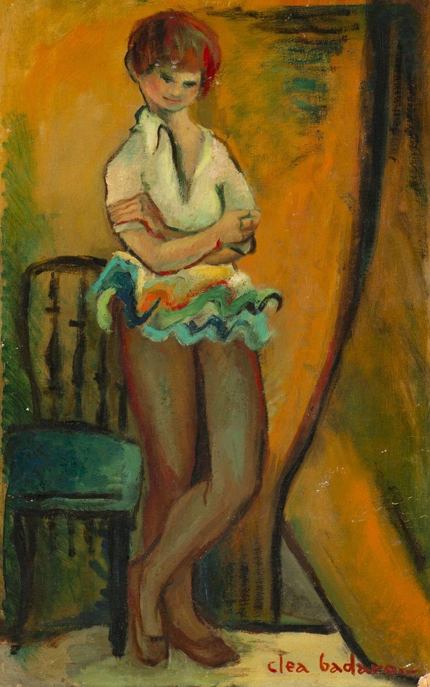 Jeune fille au tutu, huile sur panneau signée, dédicacée au dos "à mon cher ami axisa, avec toute ma sympathie" 41x26,5 cm