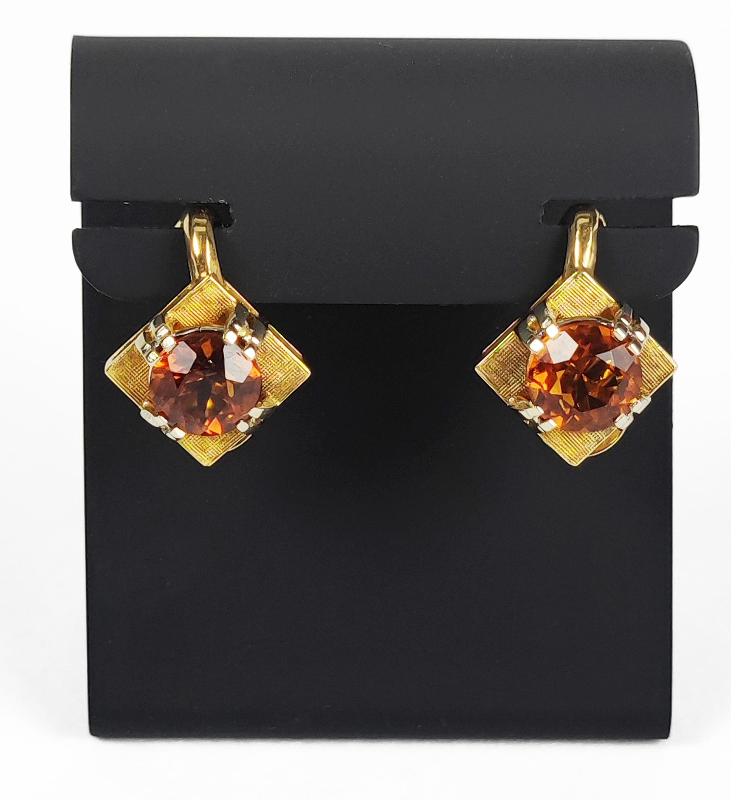 3166. Clips d'oreilles à motifs de losanges sertis de citrines taille brillant