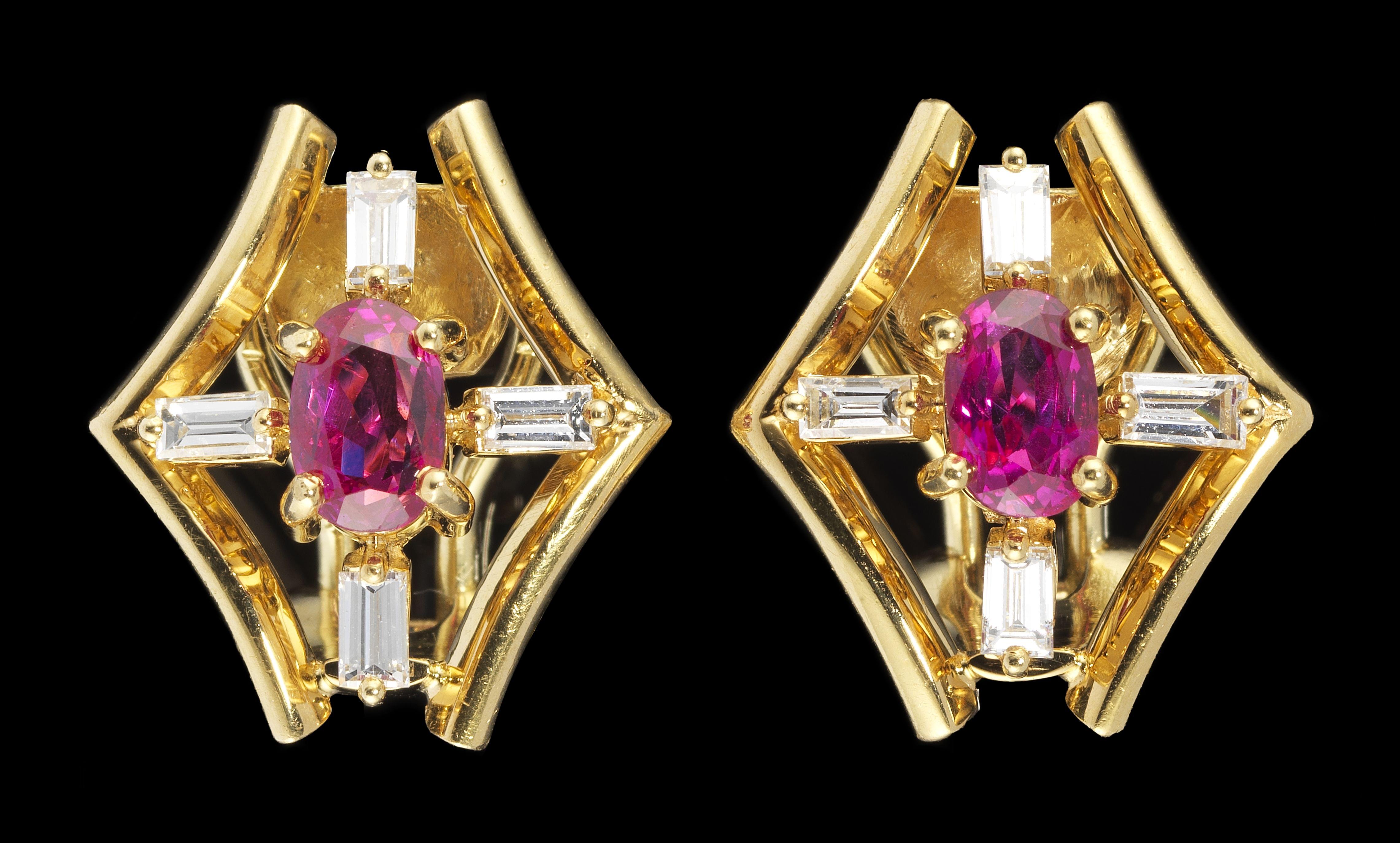 183. Pendants d'oreilles retenant cinq pampilles serties de rubis tai...