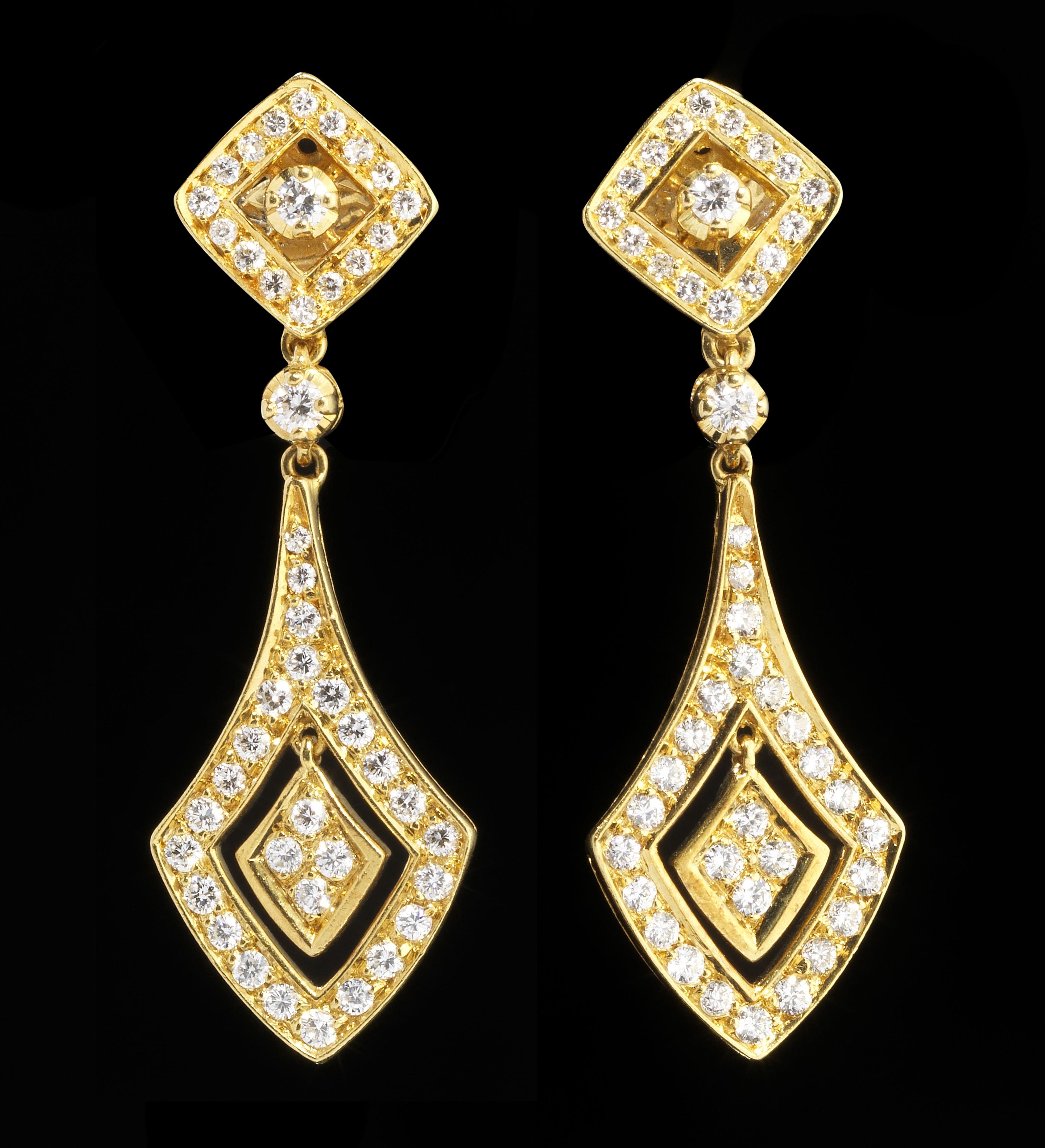 3375. Clips d'oreilles retenant un motif losange et pavés de diamants