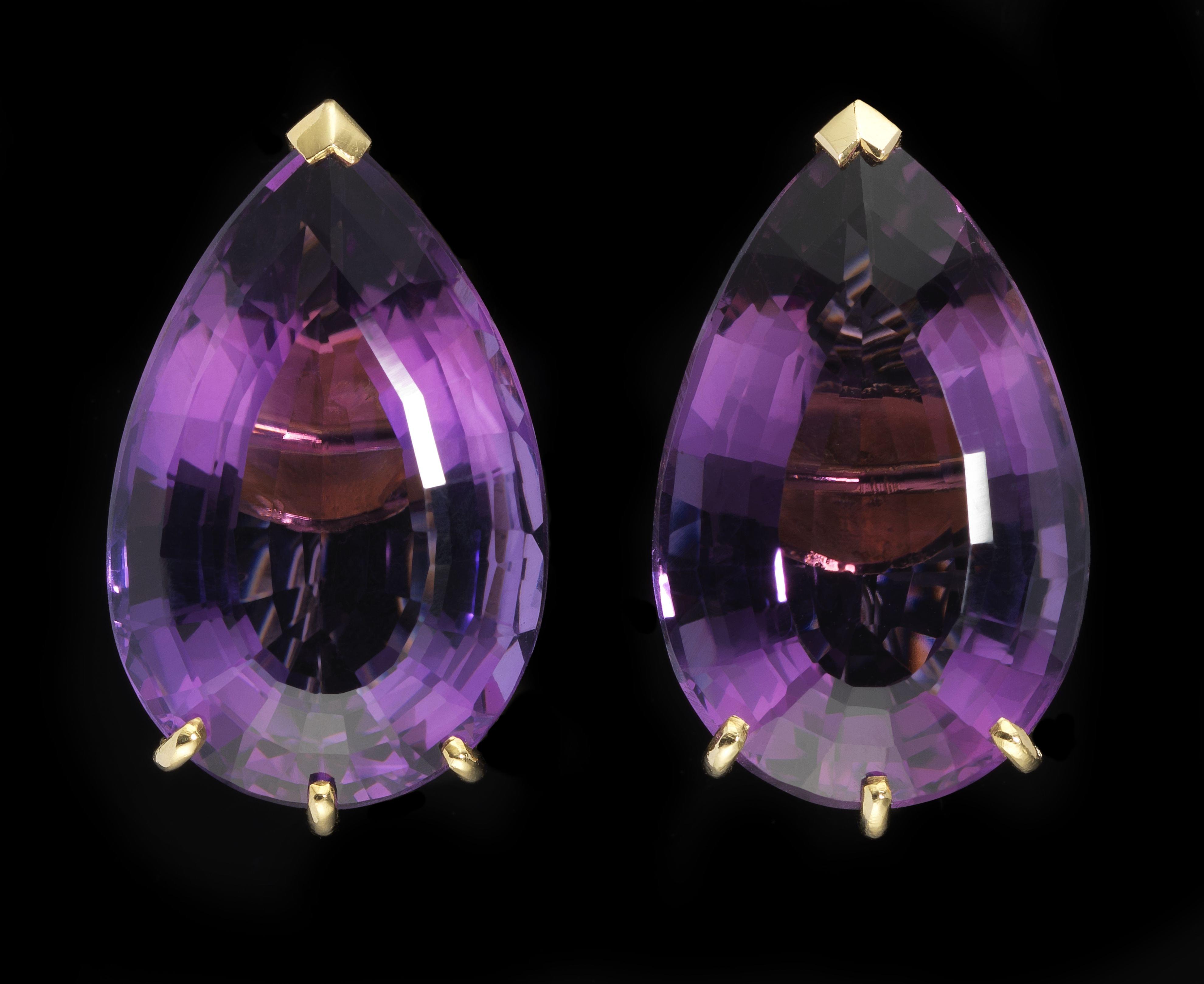 3336. Clips d'oreilles sertis d'améthystes taille poire (total env. 35 ct)