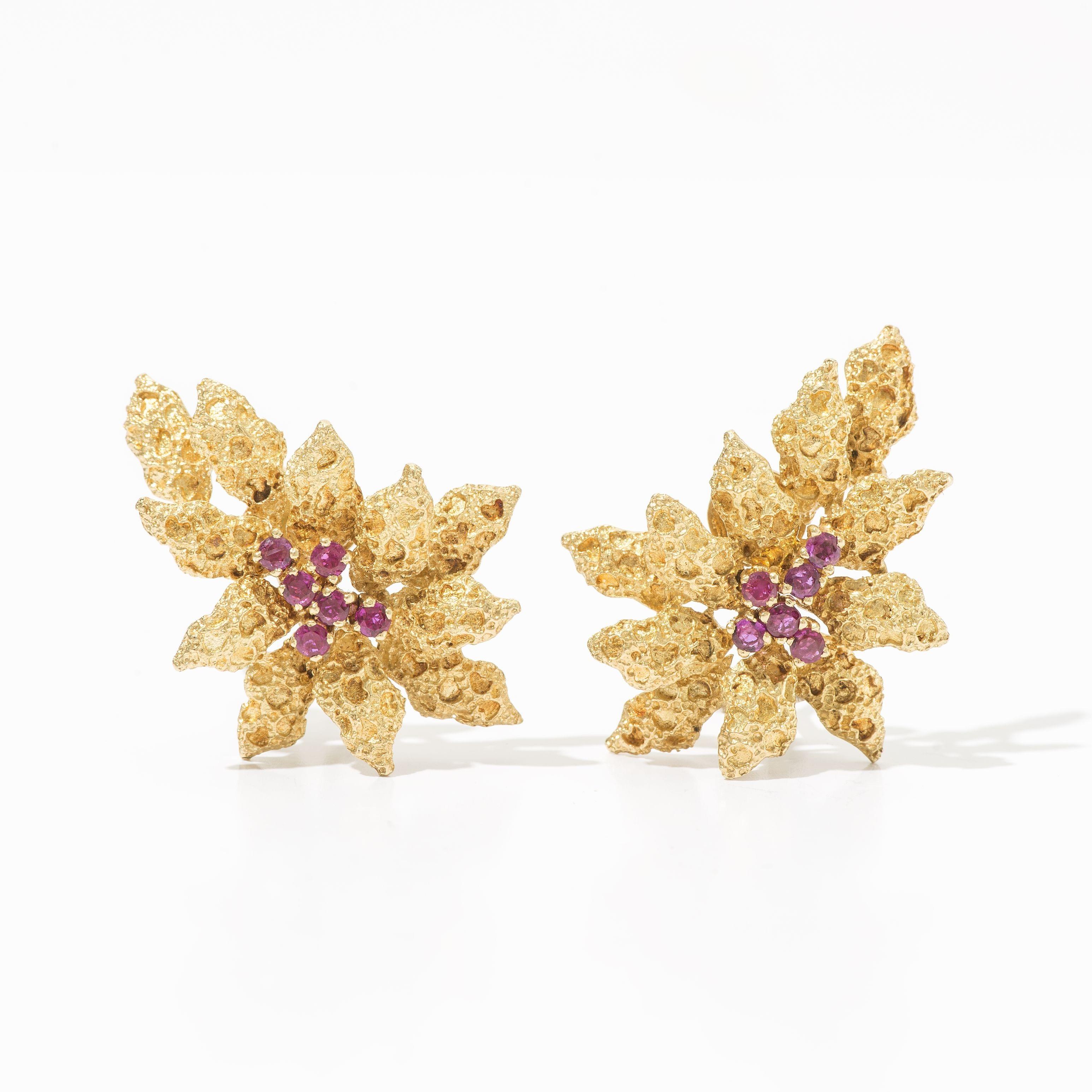 65. Paire d'épingles serties de diamants, de rubis et de saphirs