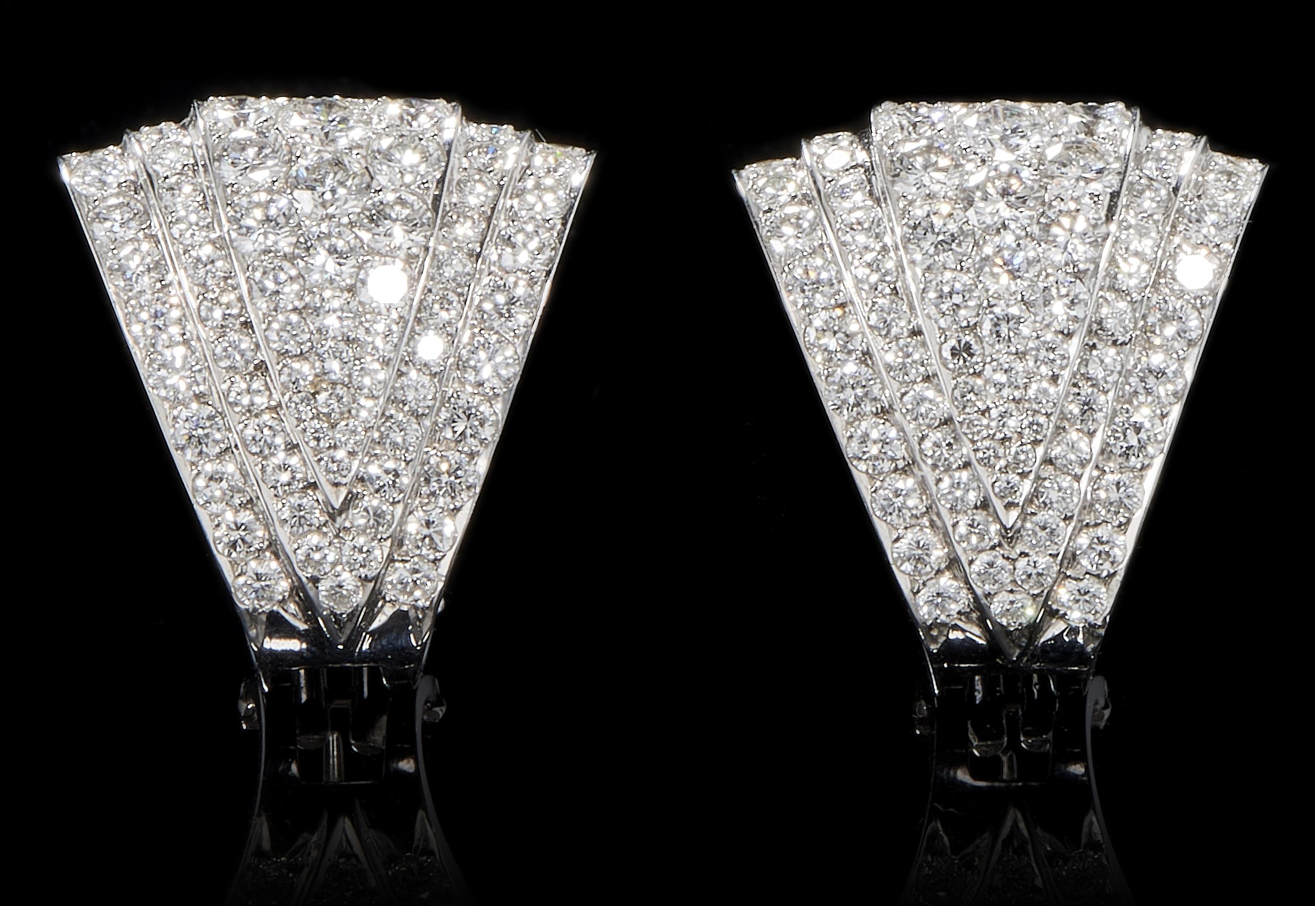 1088. Clips d'oreilles géométriques pavés de diamants (env. 4,5 ct)