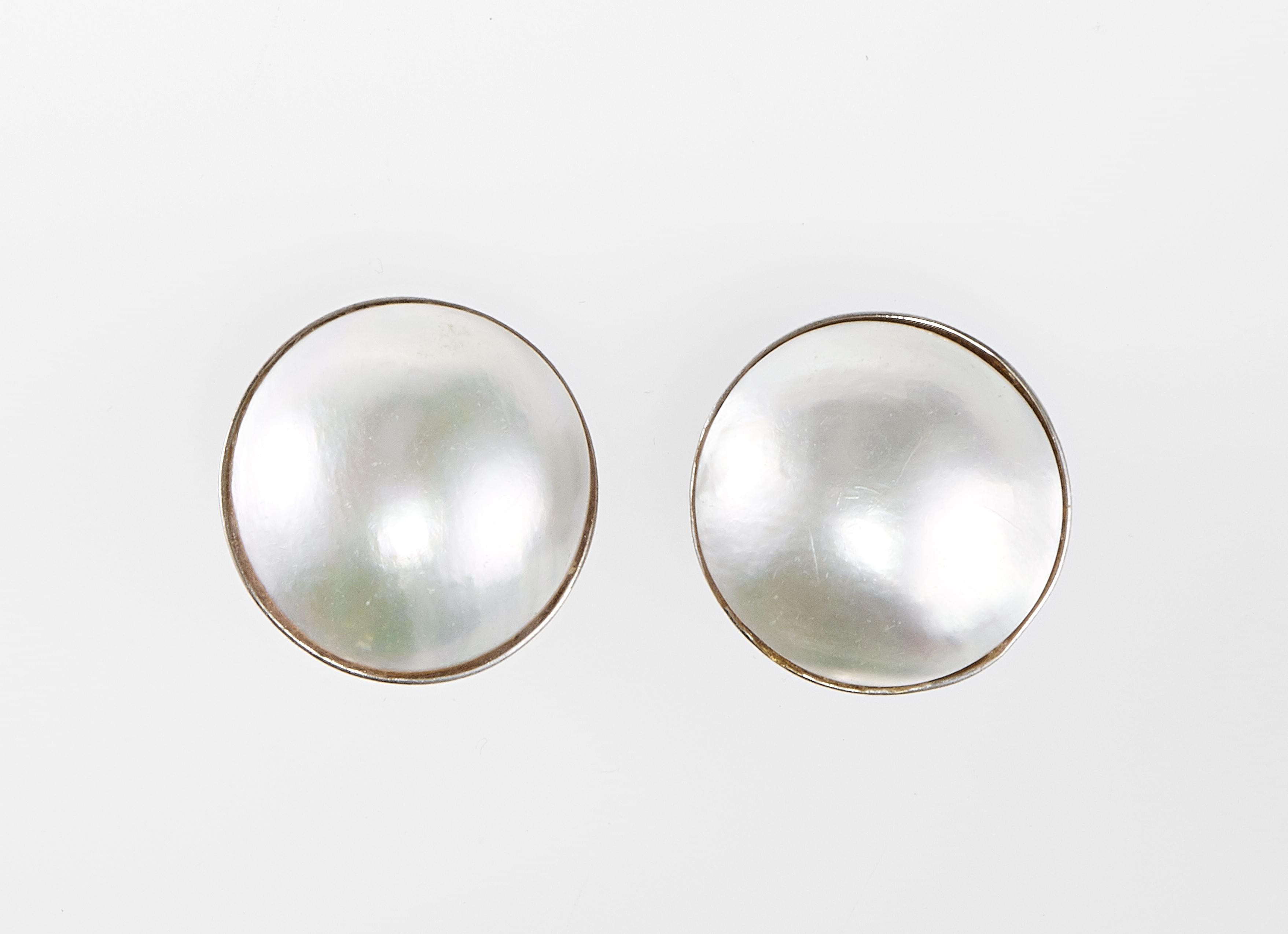 Or gris 750, H 1,5 cm, 4 g. On joint une paire de boutons de man...