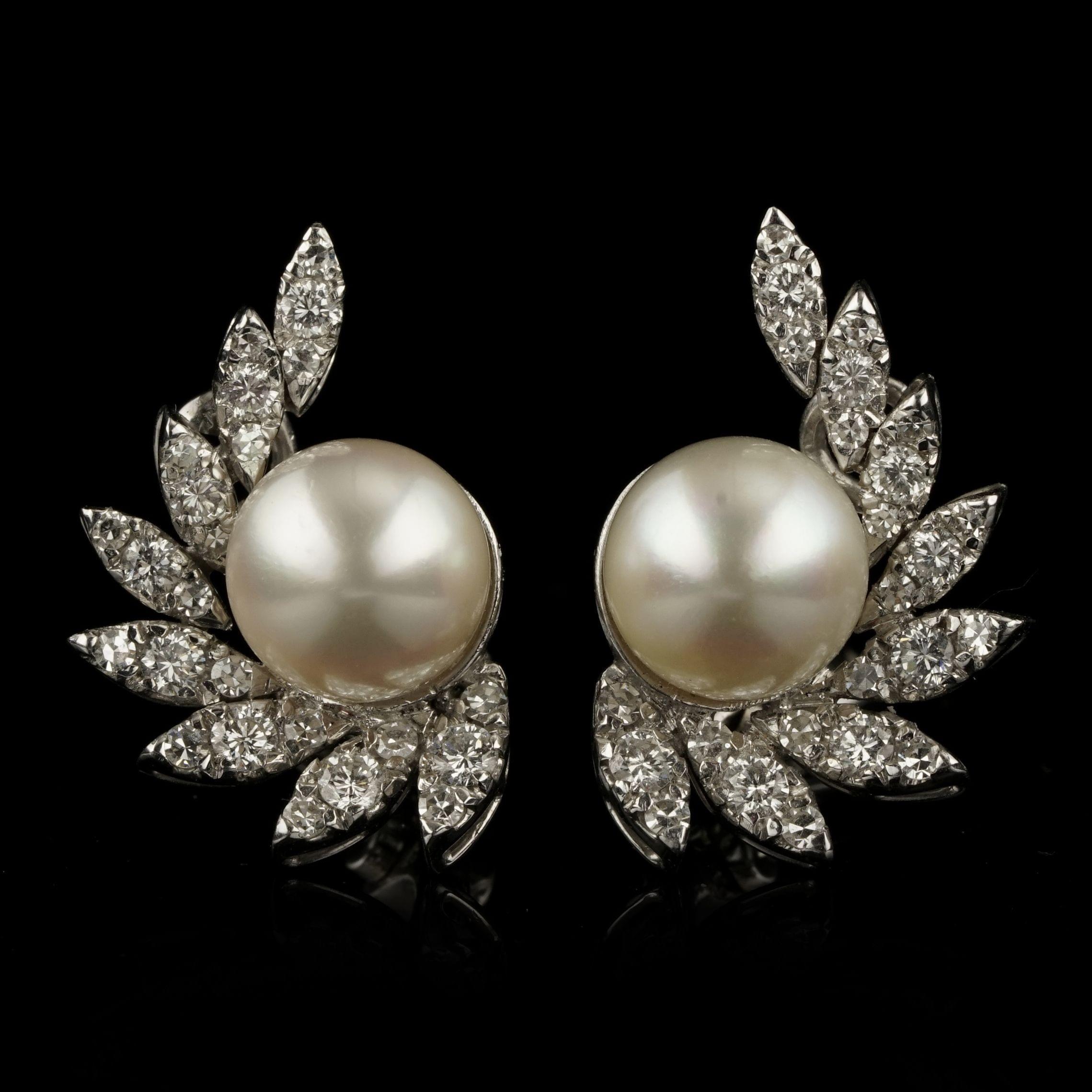 689. Clips d'oreilles sertis de perles et pavés de diamants