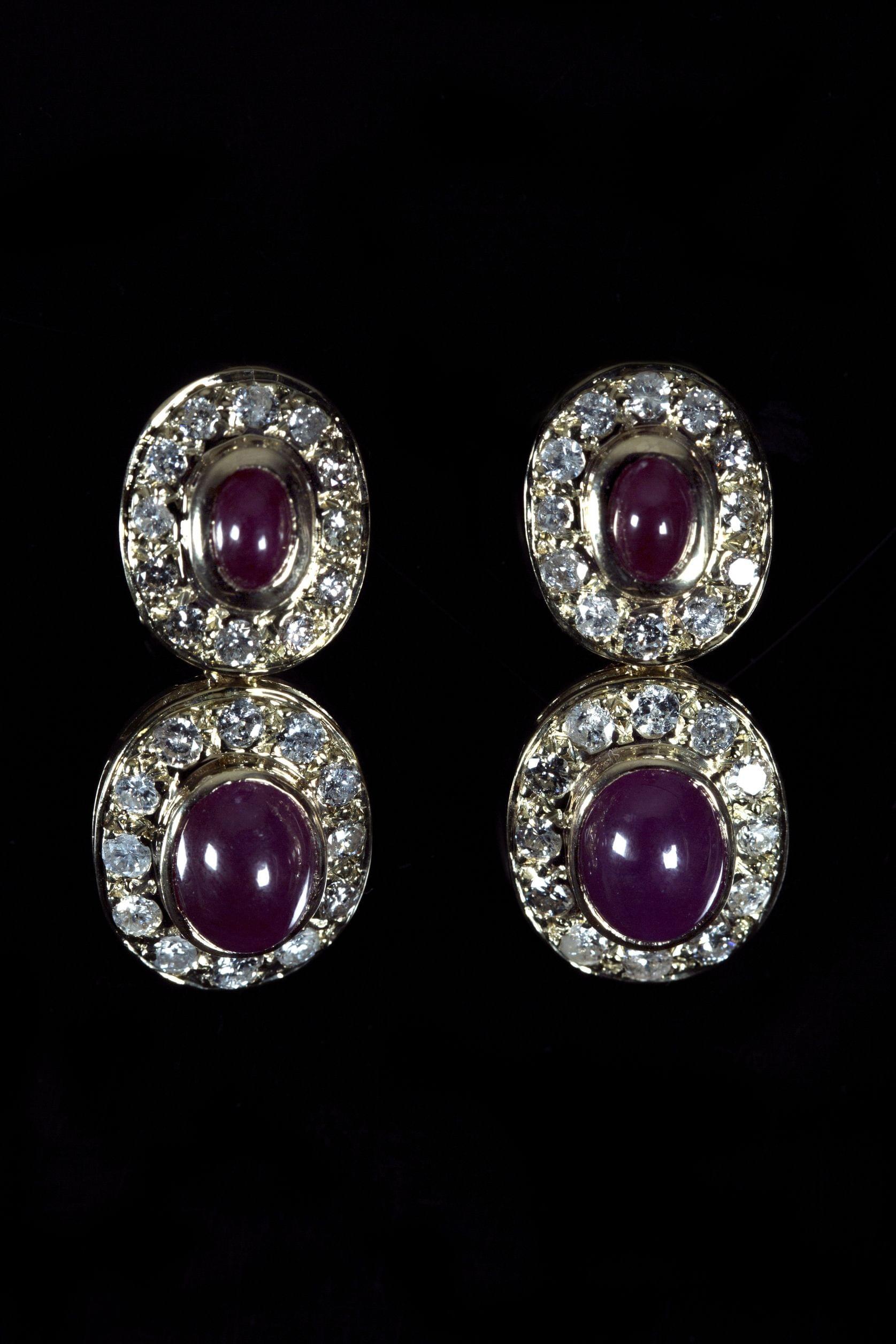 815. Clips d'oreilles sertis de rubis en cabochon entourés de diamants (env. 1,6 ct)