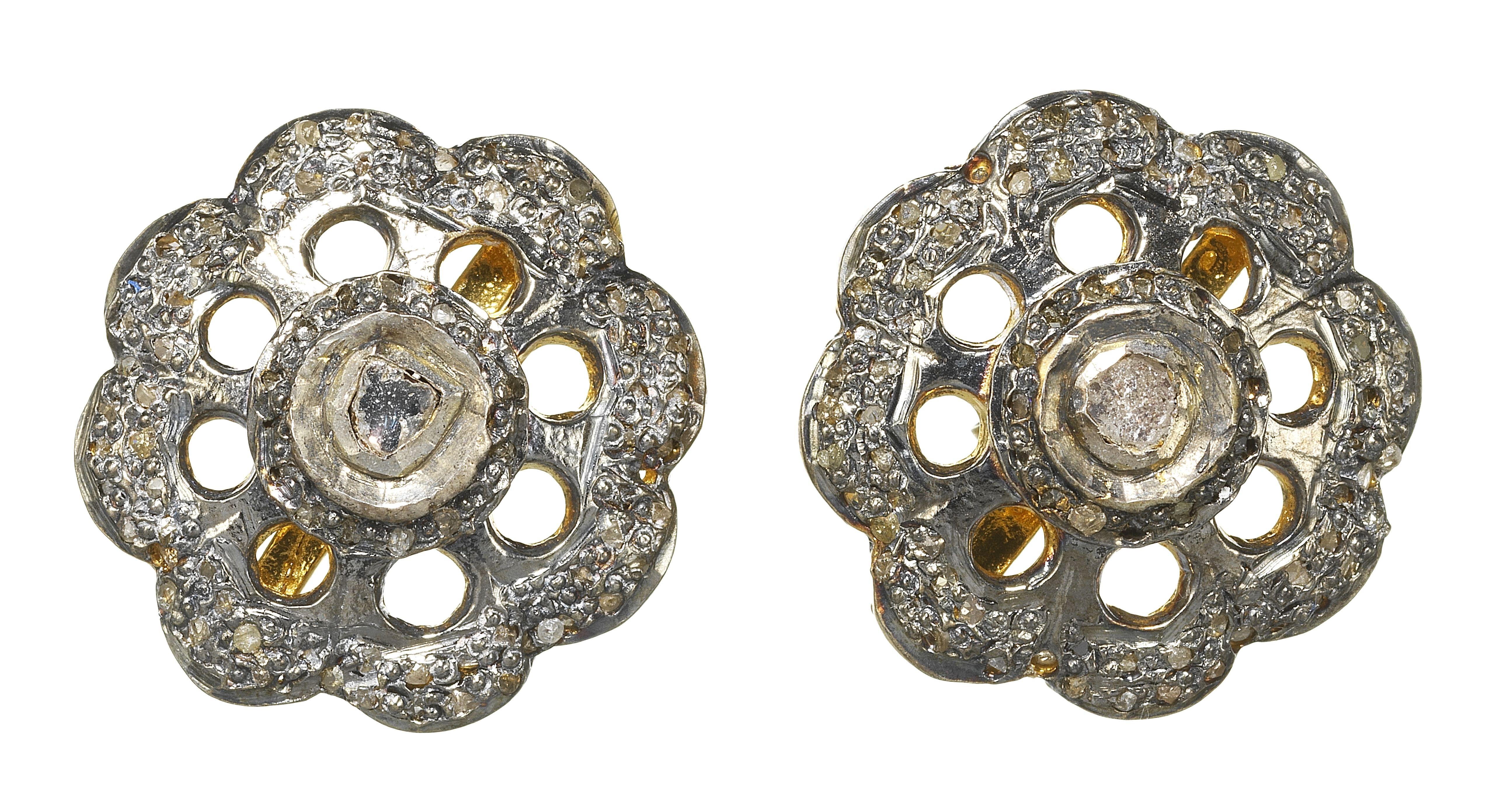 mants (total 1,1 ct)Or gris 750, H 3,5 cm, 10 g, accompagnés d'u...