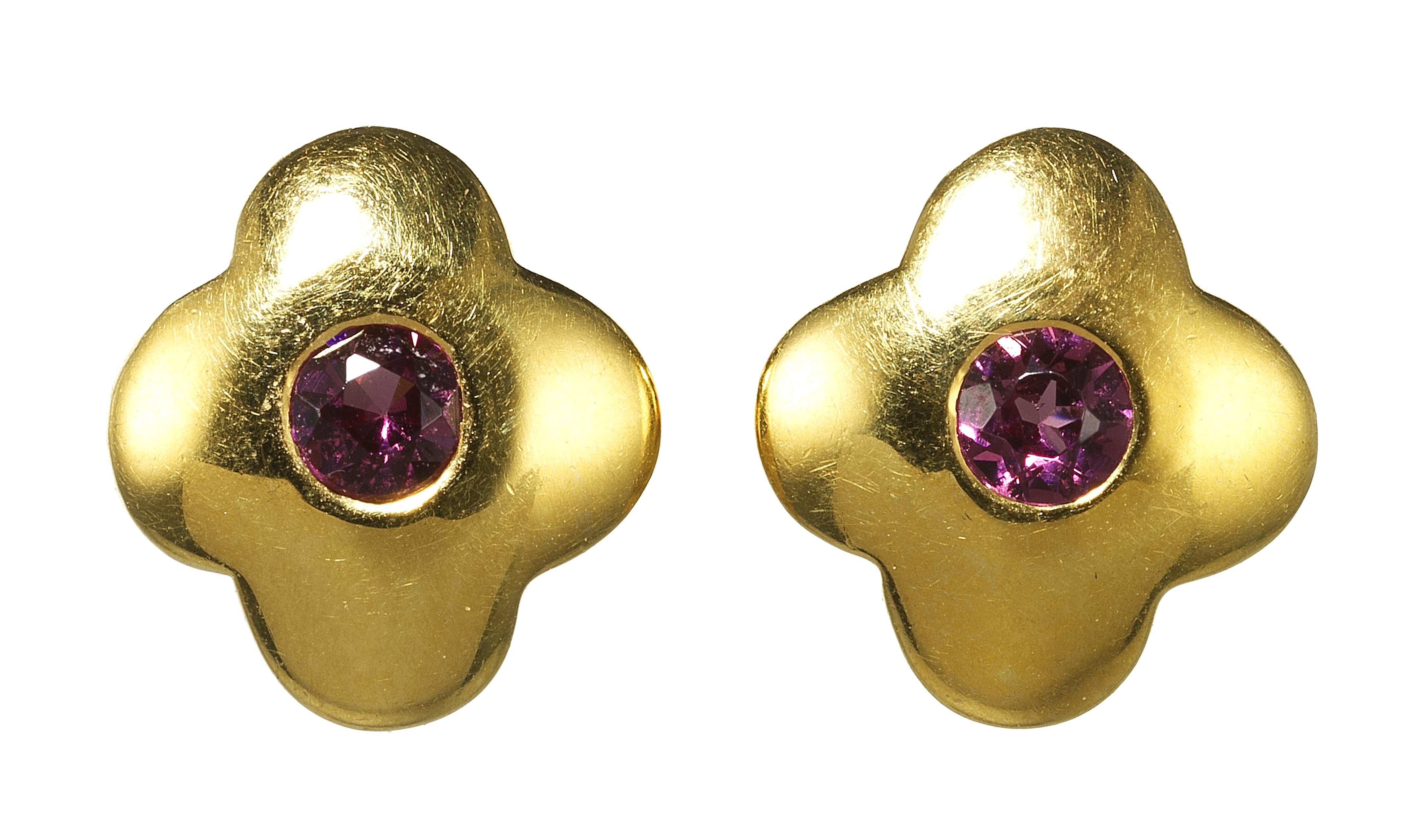 1. Paire de flambeaux à décor repoussé de larges fleurs et acanthes