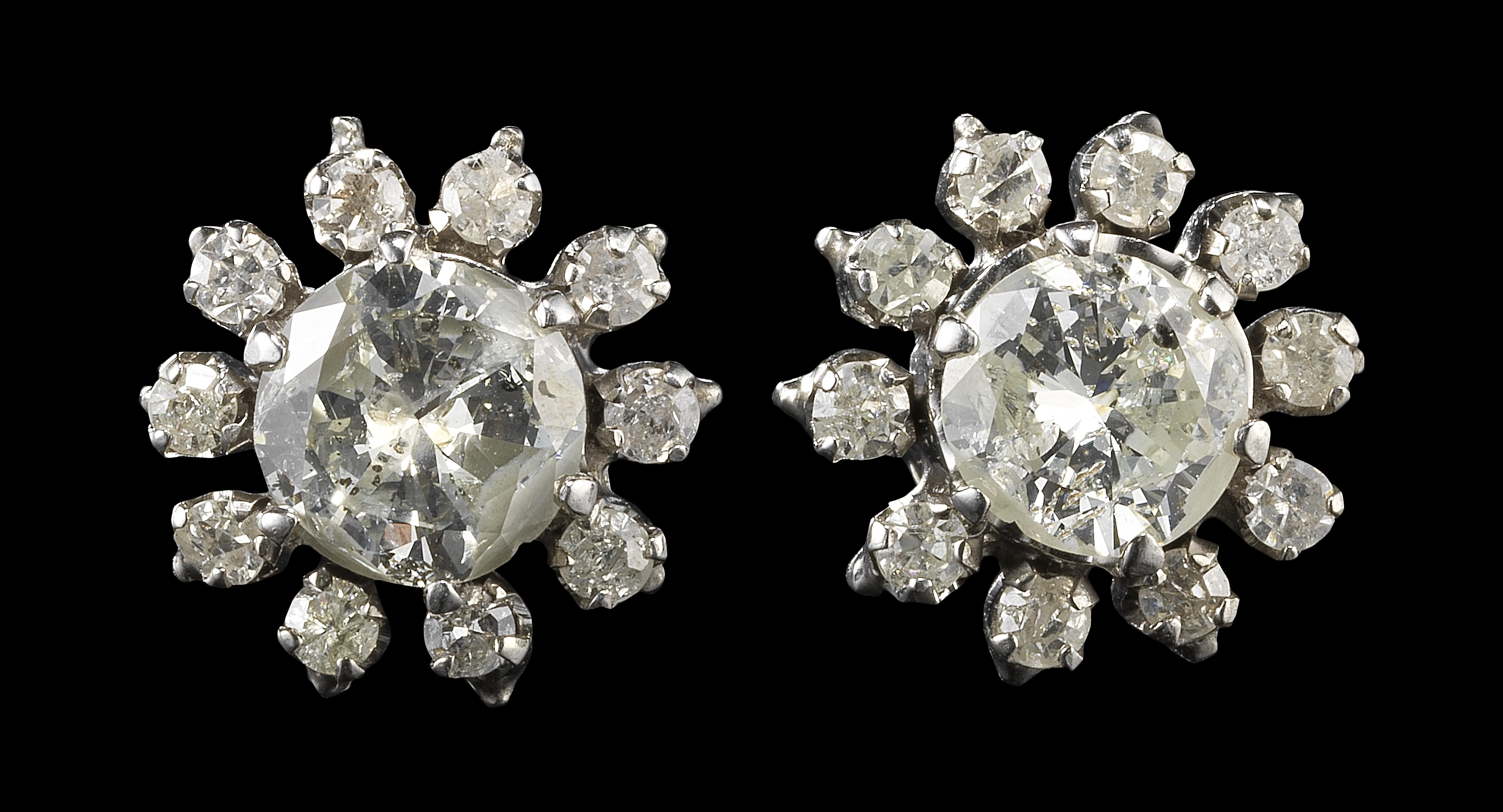 mants (total 1,1 ct)Or gris 750, H 3,5 cm, 10 g, accompagnés d'u...