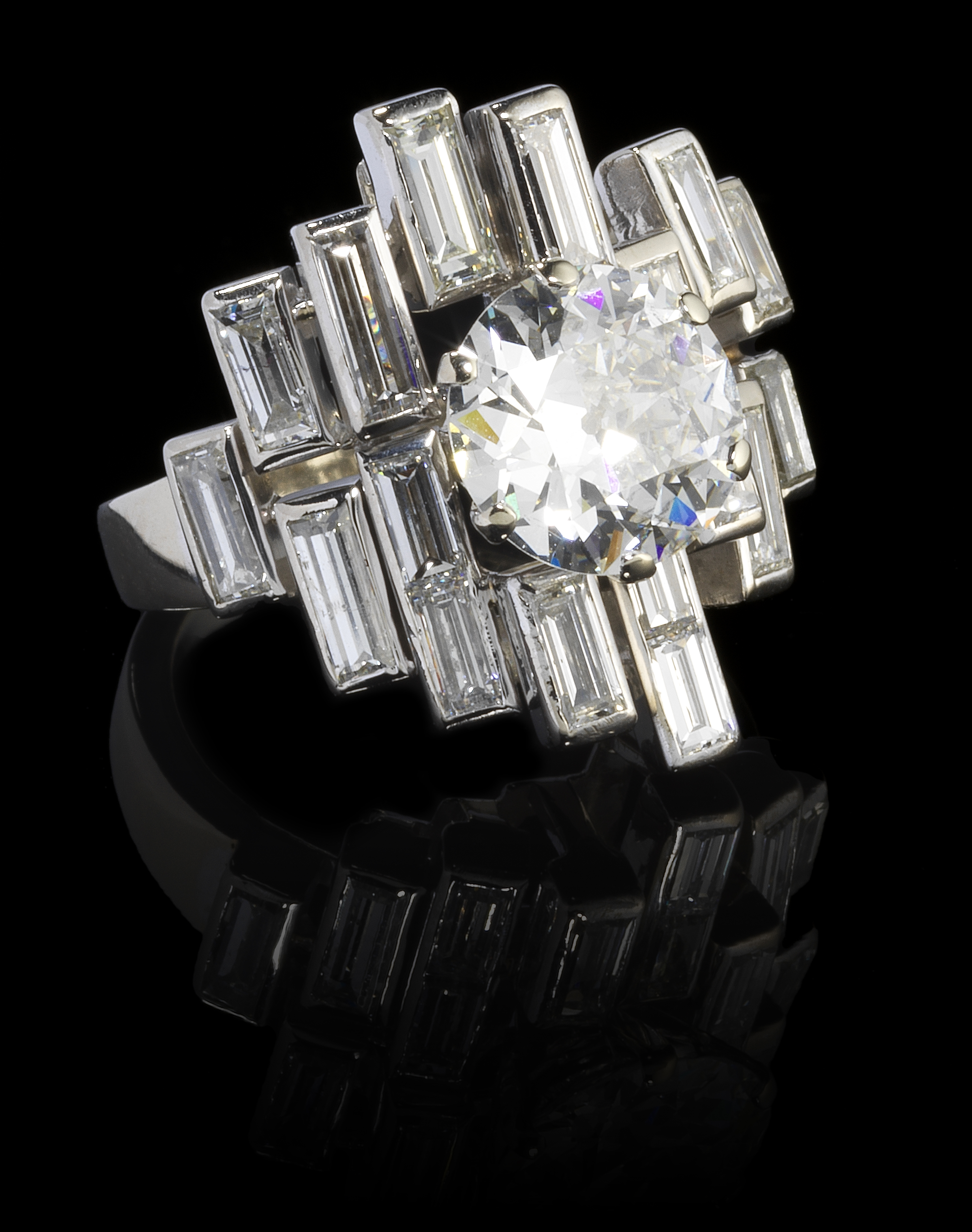 36. Bague à motif de losange ajouré sertie d'un diamant taille ancie...