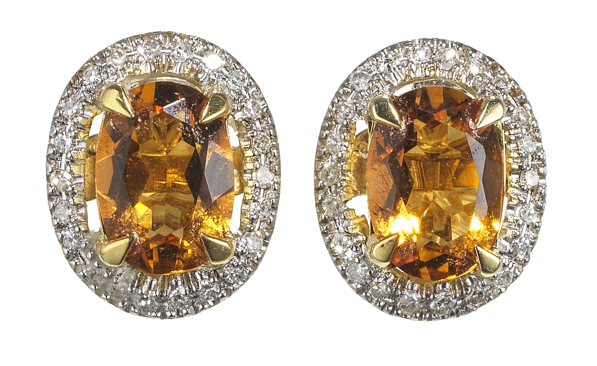 3164. *Clous d'oreilles sertis de citrines taille ovale (env. 1 ct) entourées de diamants