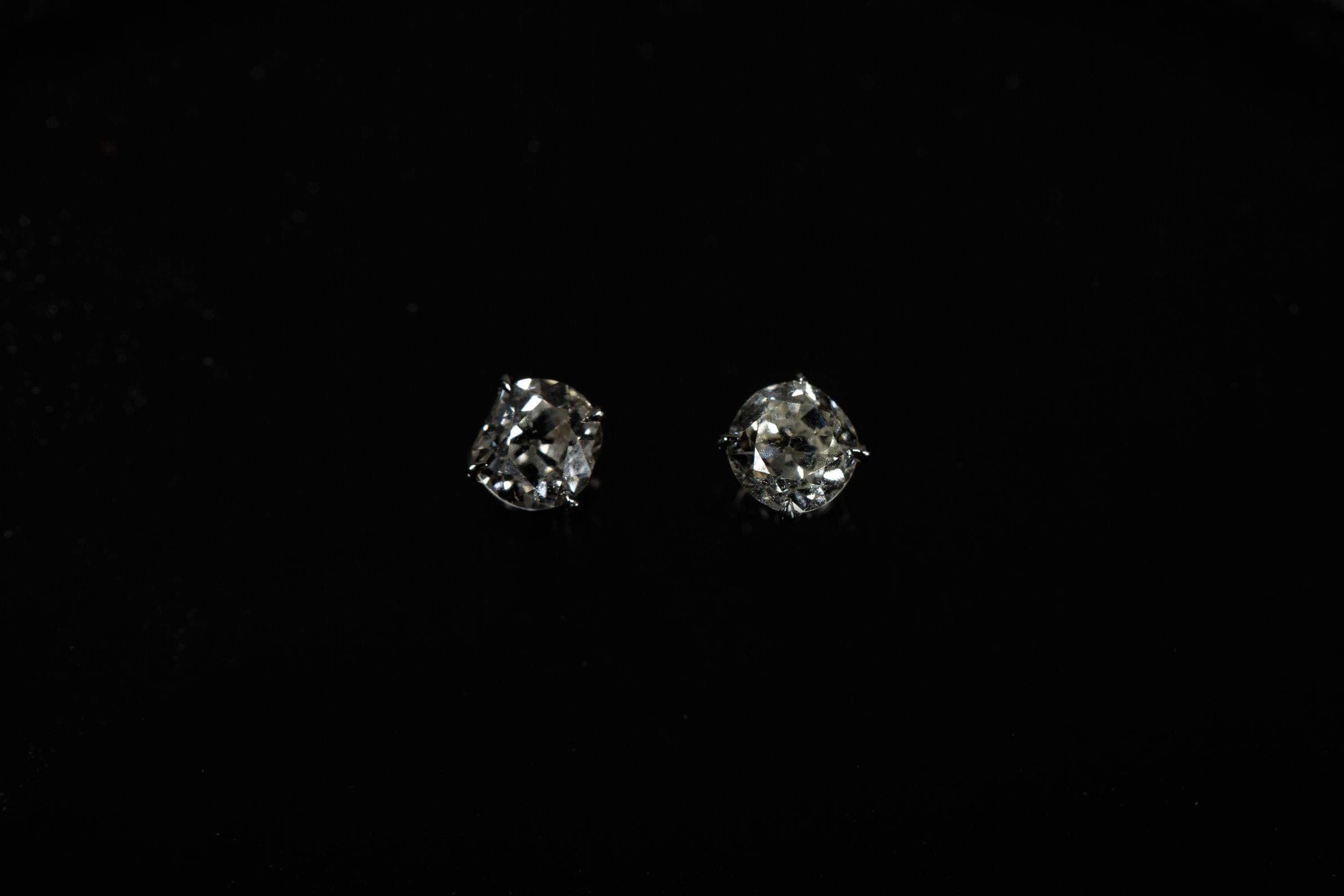 865. Clous d'oreilles sertis de diamants taille ancienne (env. 0,9 ct) retenus par quatre griffes