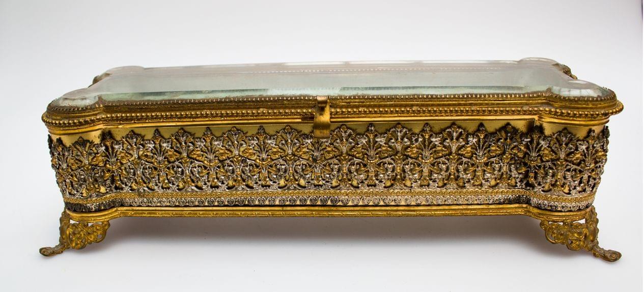 140. Boîte à cigarettes imitant un coffret en bois à charnières