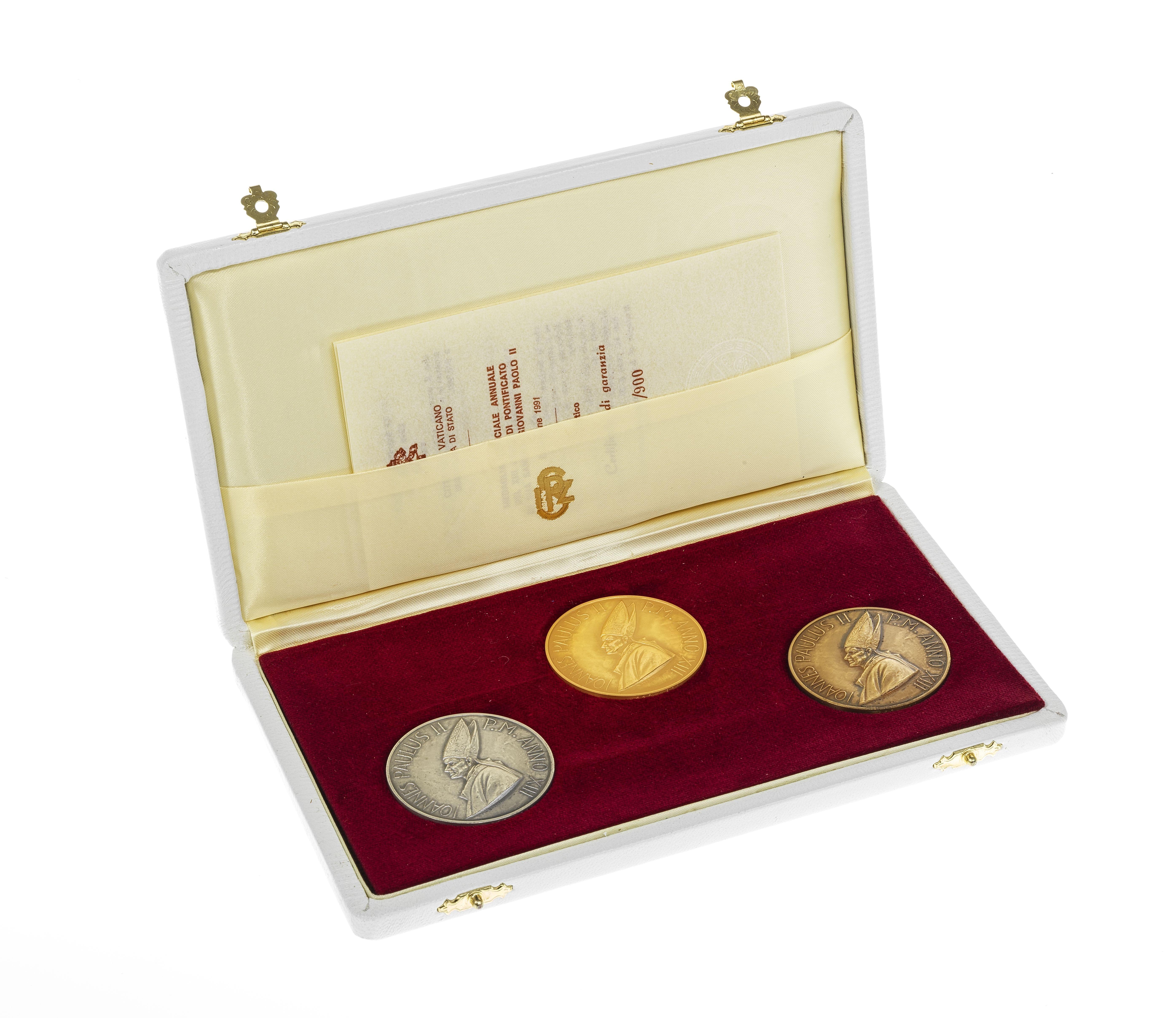 3554. Coffret de trois médailles annuelles officielles du Vatican à l'effigie du pape Jean-Paul II