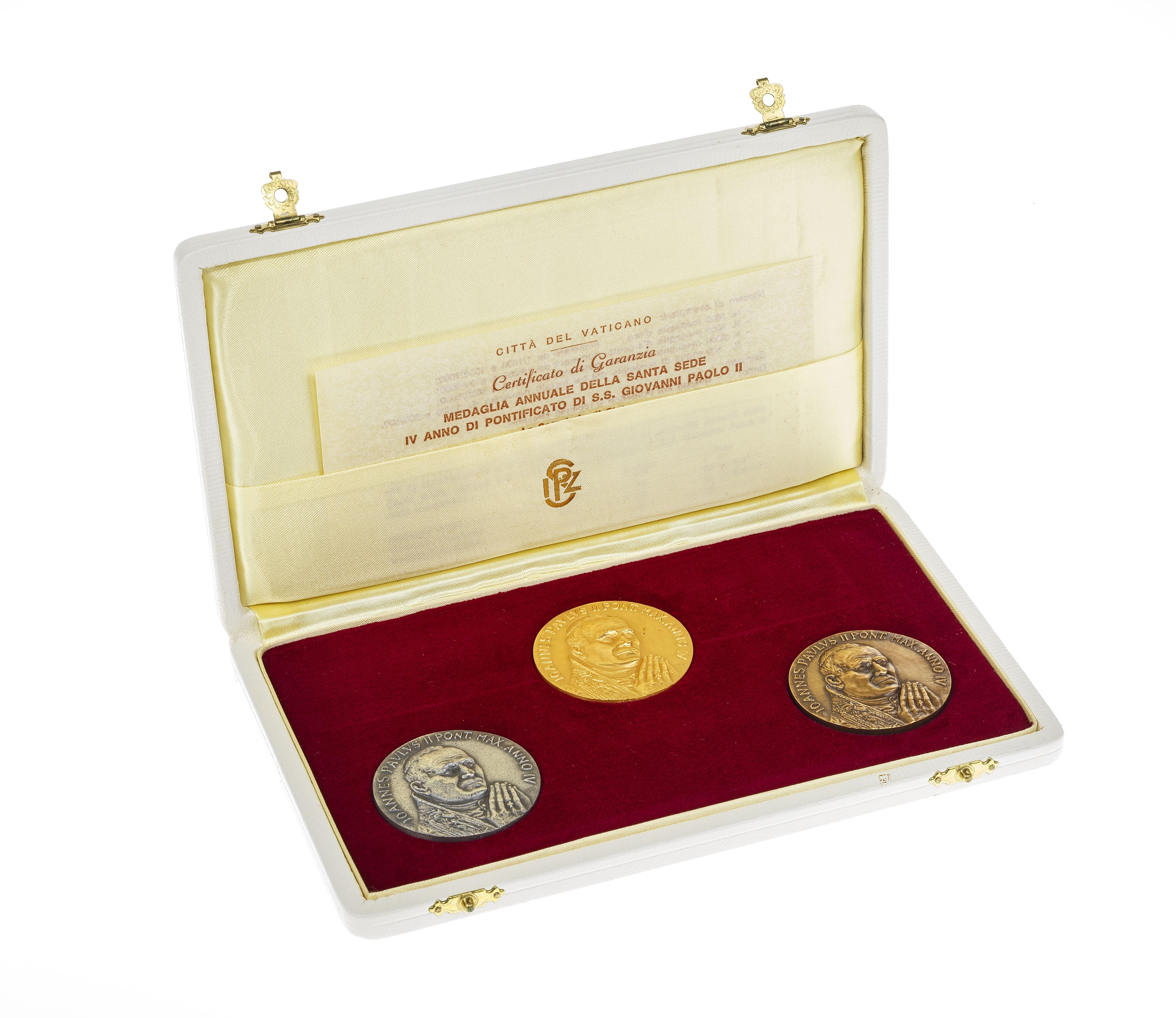 3550. Coffret de trois médailles annuelles officielles du Vatican à l'effigie du pape Jean-Paul II