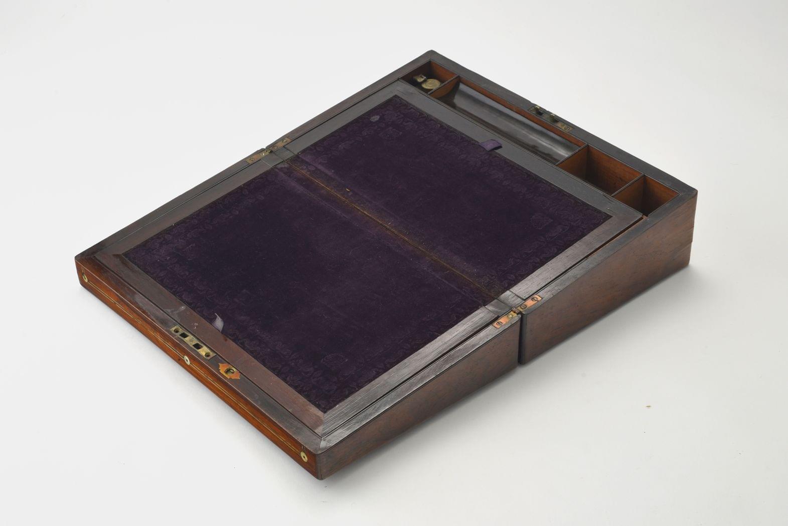 3565. Coffret formant écritoire à motif incrusté de cheval