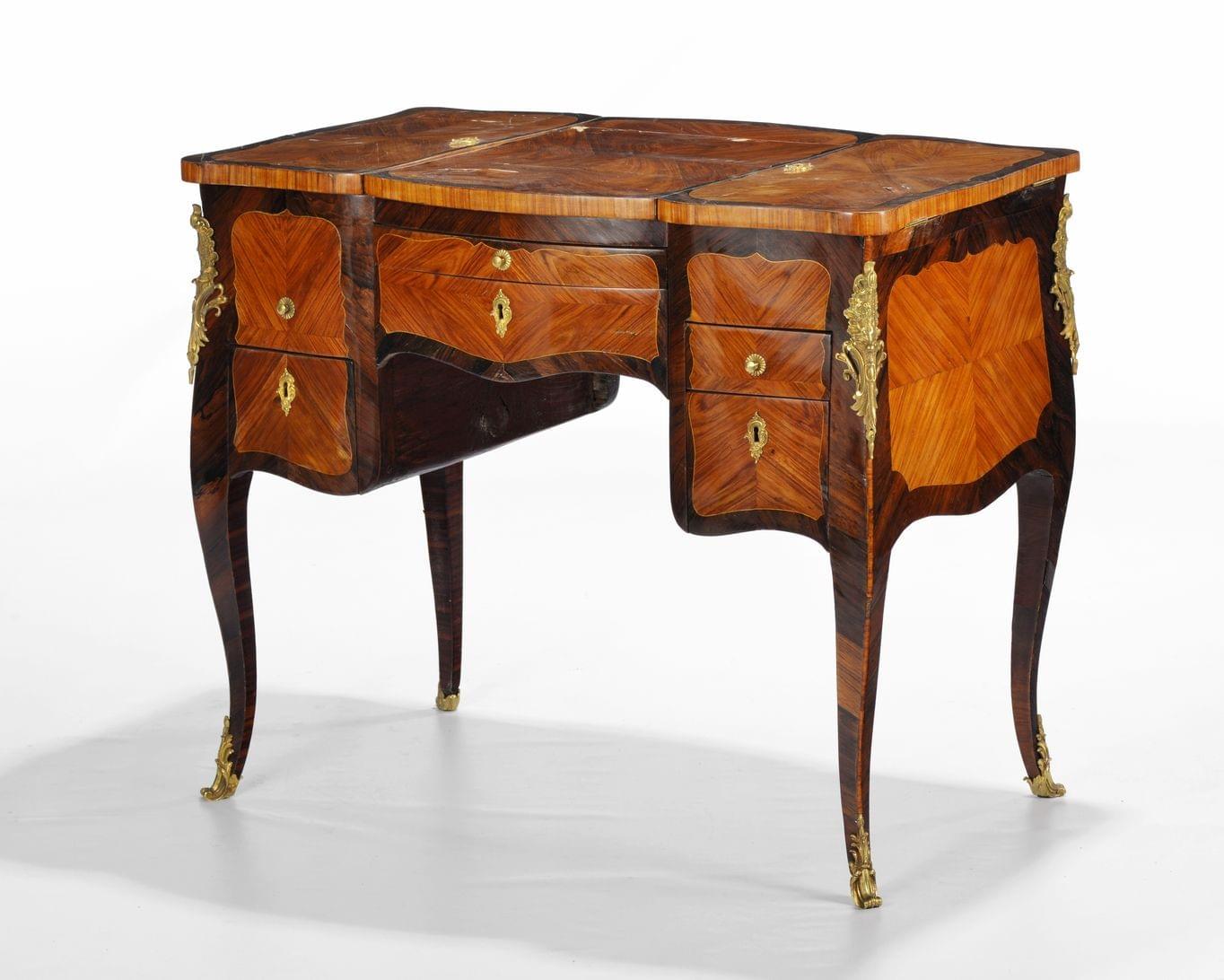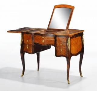 Bois de rose et bois de violette marquetés dans des encadrements, 77x92x59 cm