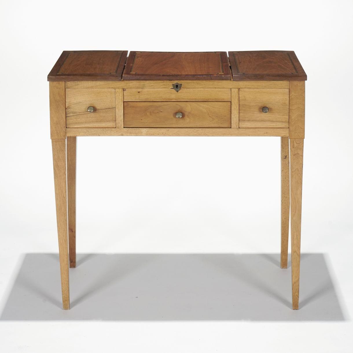 Trois tiroirs et trois abattants, bois fruitier, 76x76x43