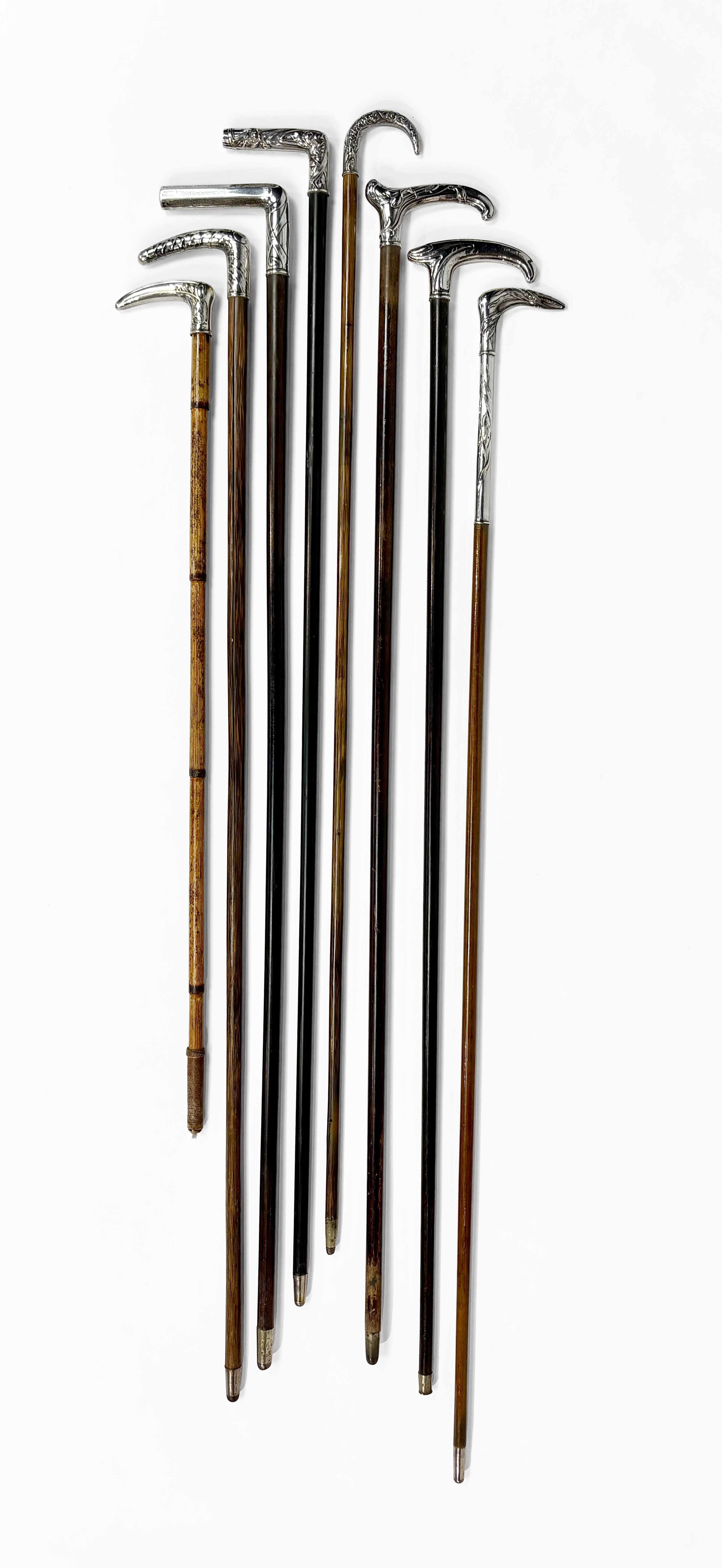 4155. Collection de 17 cannes, pommeaux en argent, métal argenté et pierre