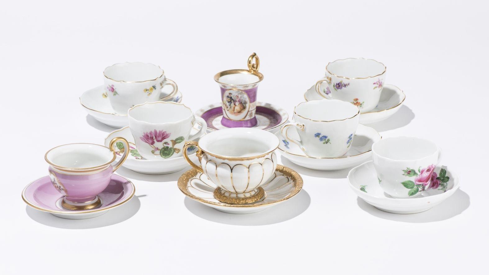 Meissen, porcelaine à décor de fleurs et godrons dorés