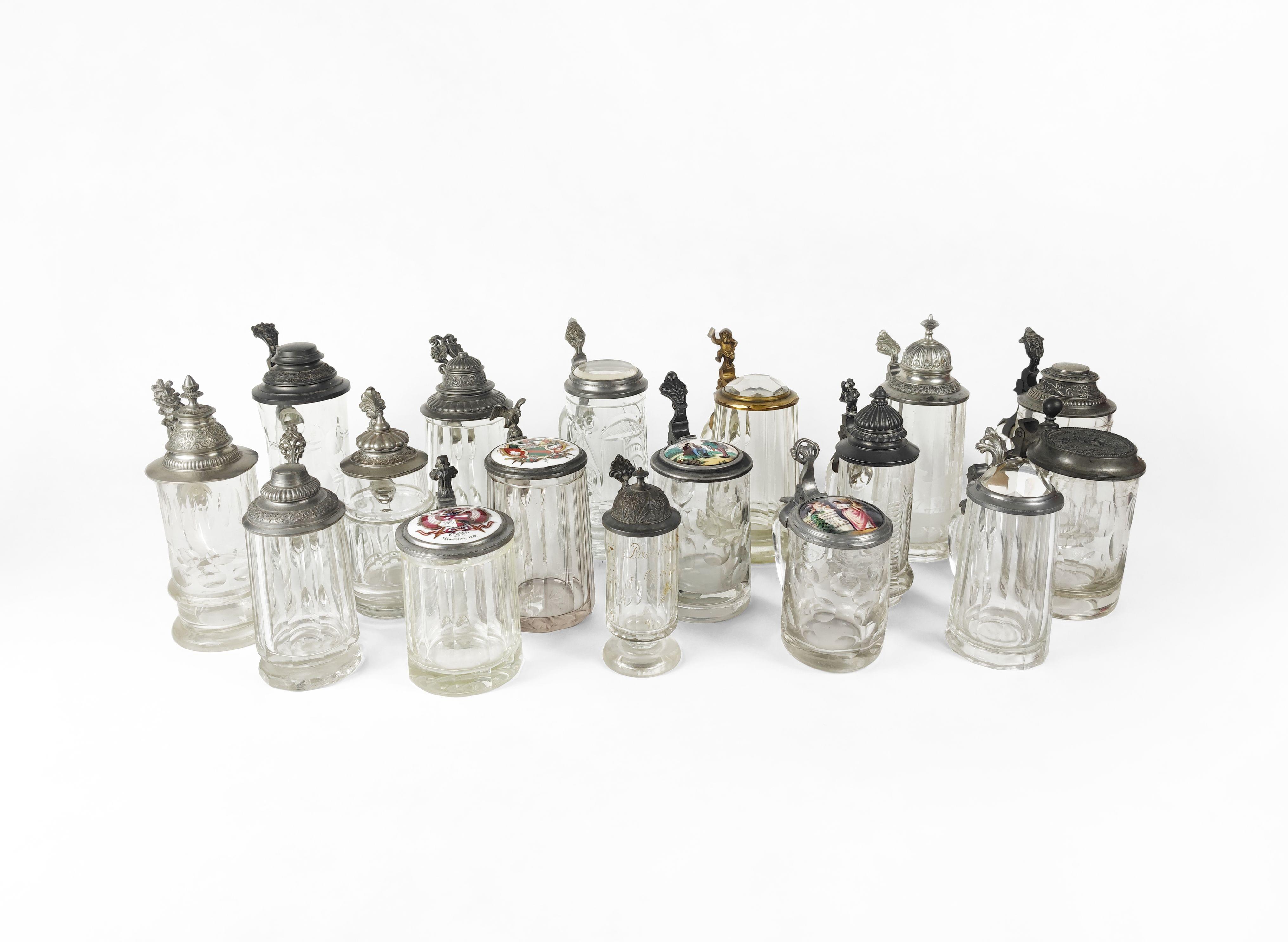 Environ 15 pièces, verre et monture en métal, dim. Diverses