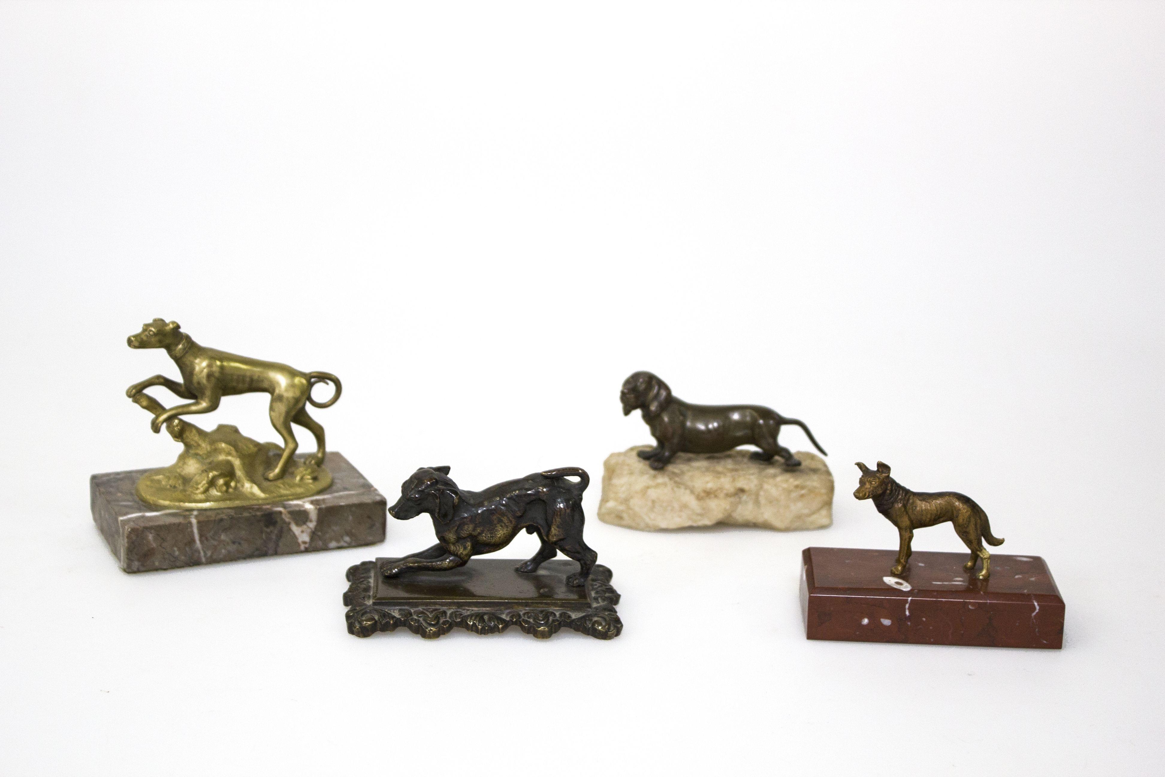 Trois sous-verre figurés en diorama et un sur socle, l'un compor...