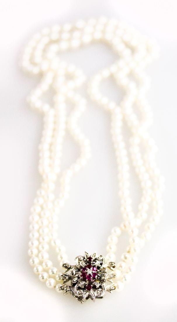 35. Bracelet ligne orné de rubis taille carrée calibrée en serti rai...