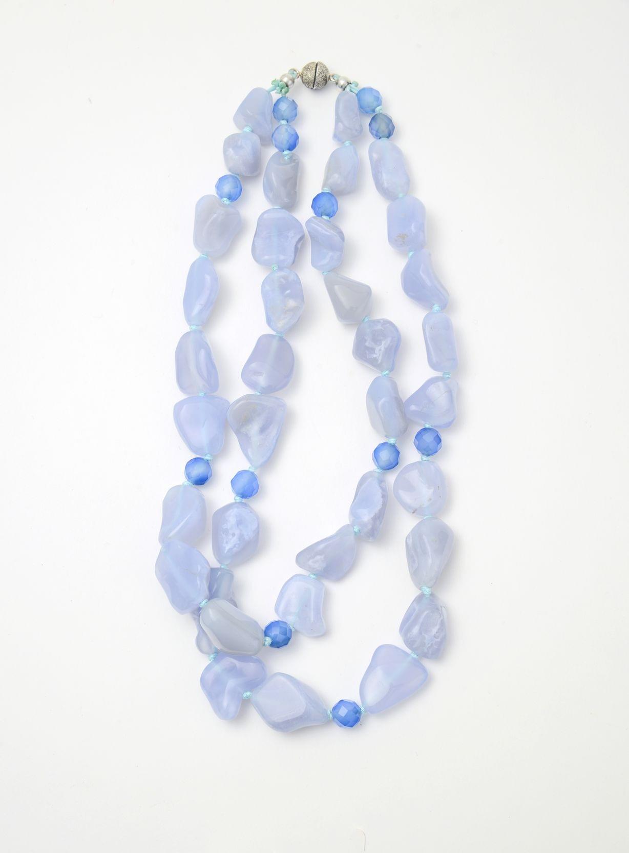 3103. Collier à double rang de perles d'agates bleues alternées avec des perles de calcédoine bleue facettées