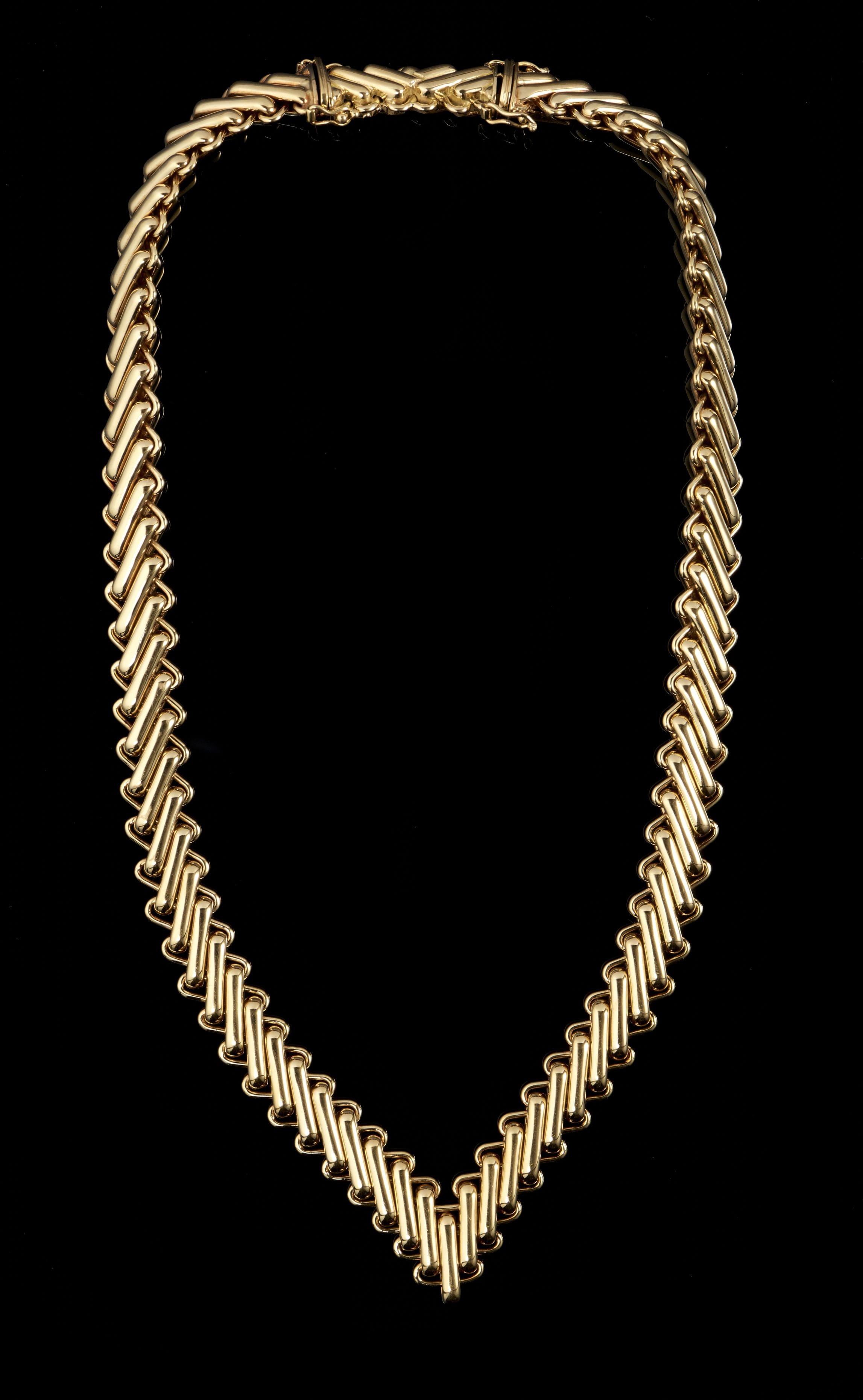 Travail français, or 750, L 42 à 45 cm avec sa rallonge, 95 g