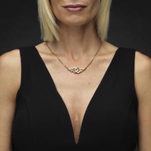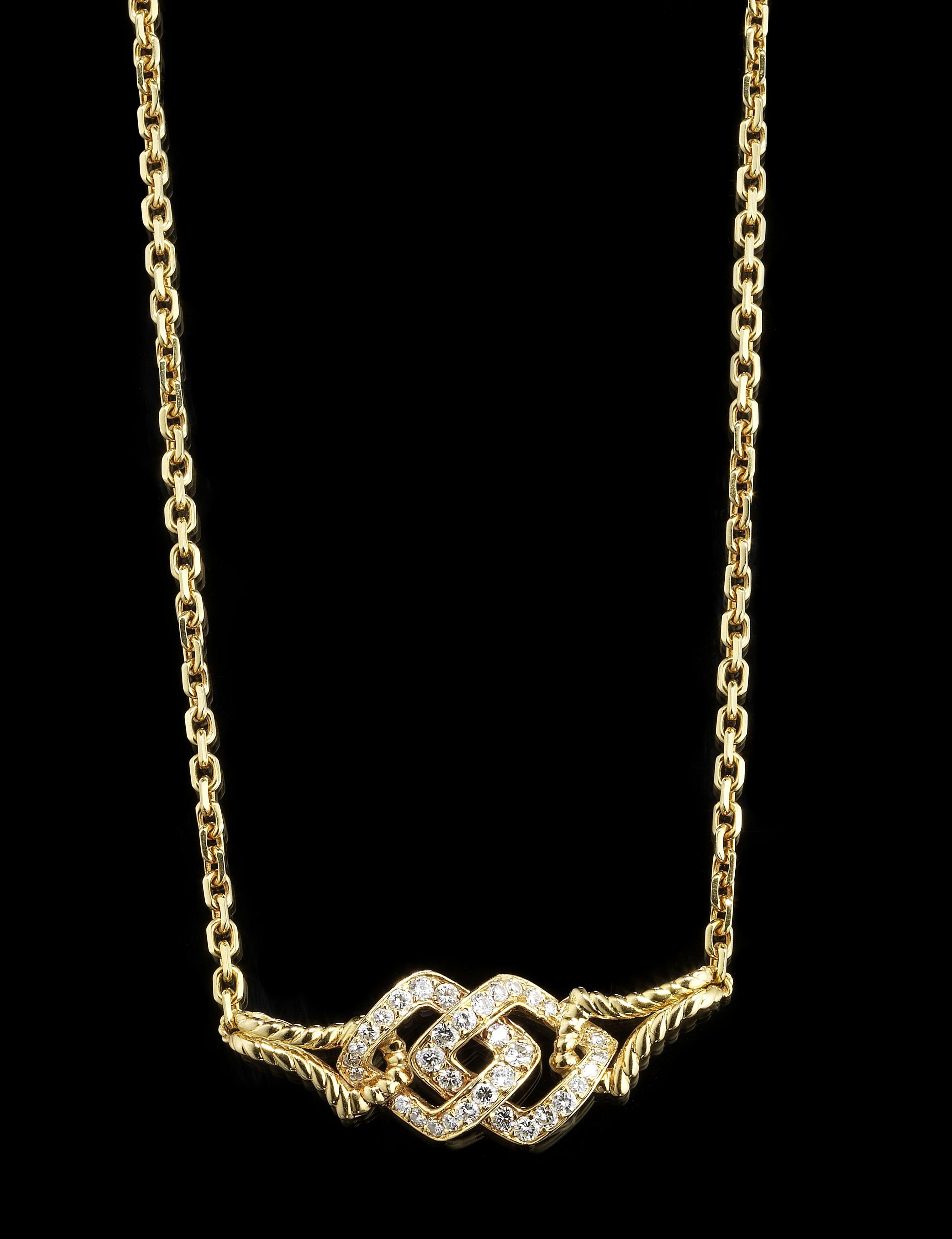 3376. Collier à maille forçat limée retenant un motif d'entrelacs ajourés sertis de diamants