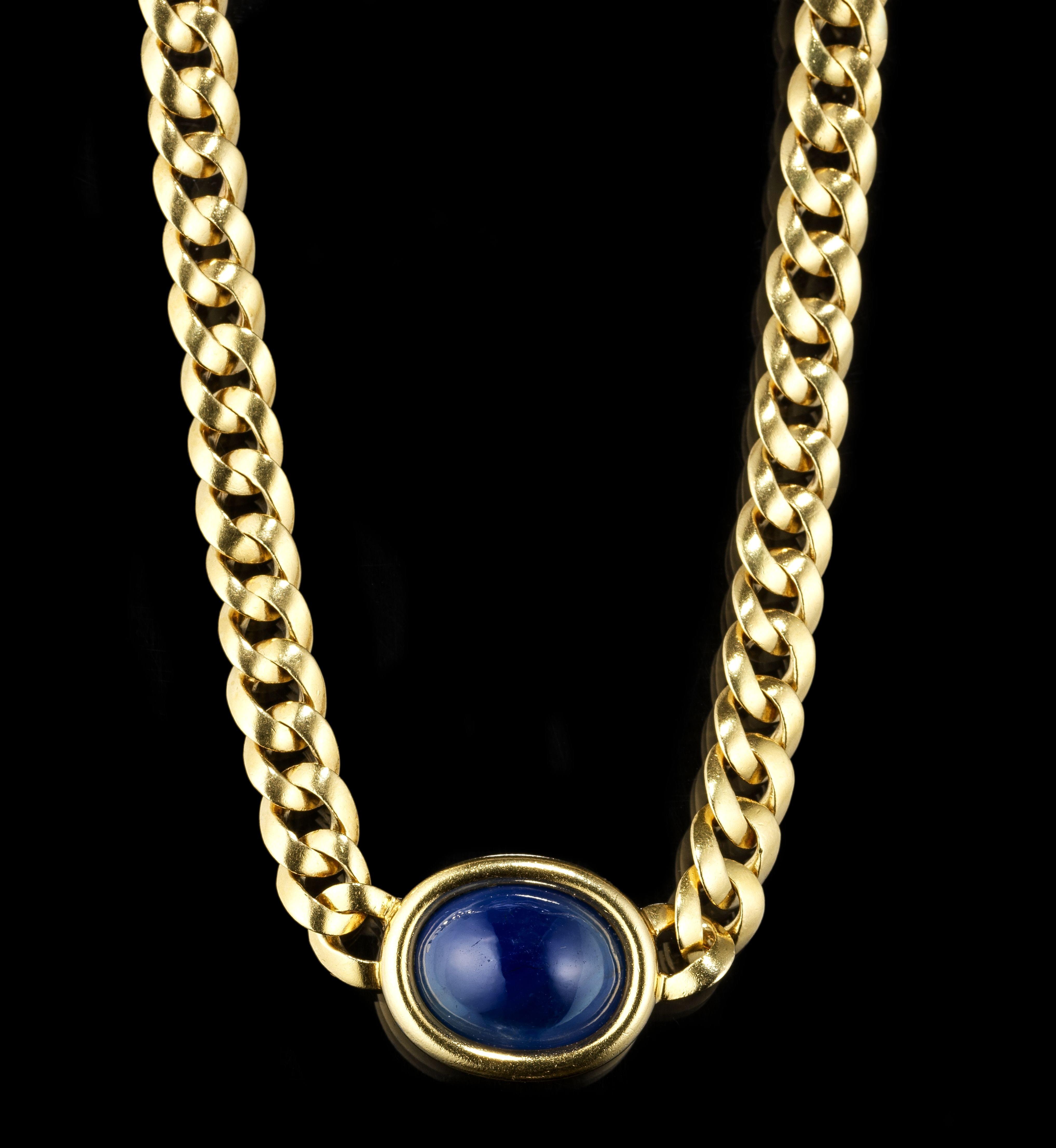 20. Collier à maille plate terminé par un motif serti de saphirs