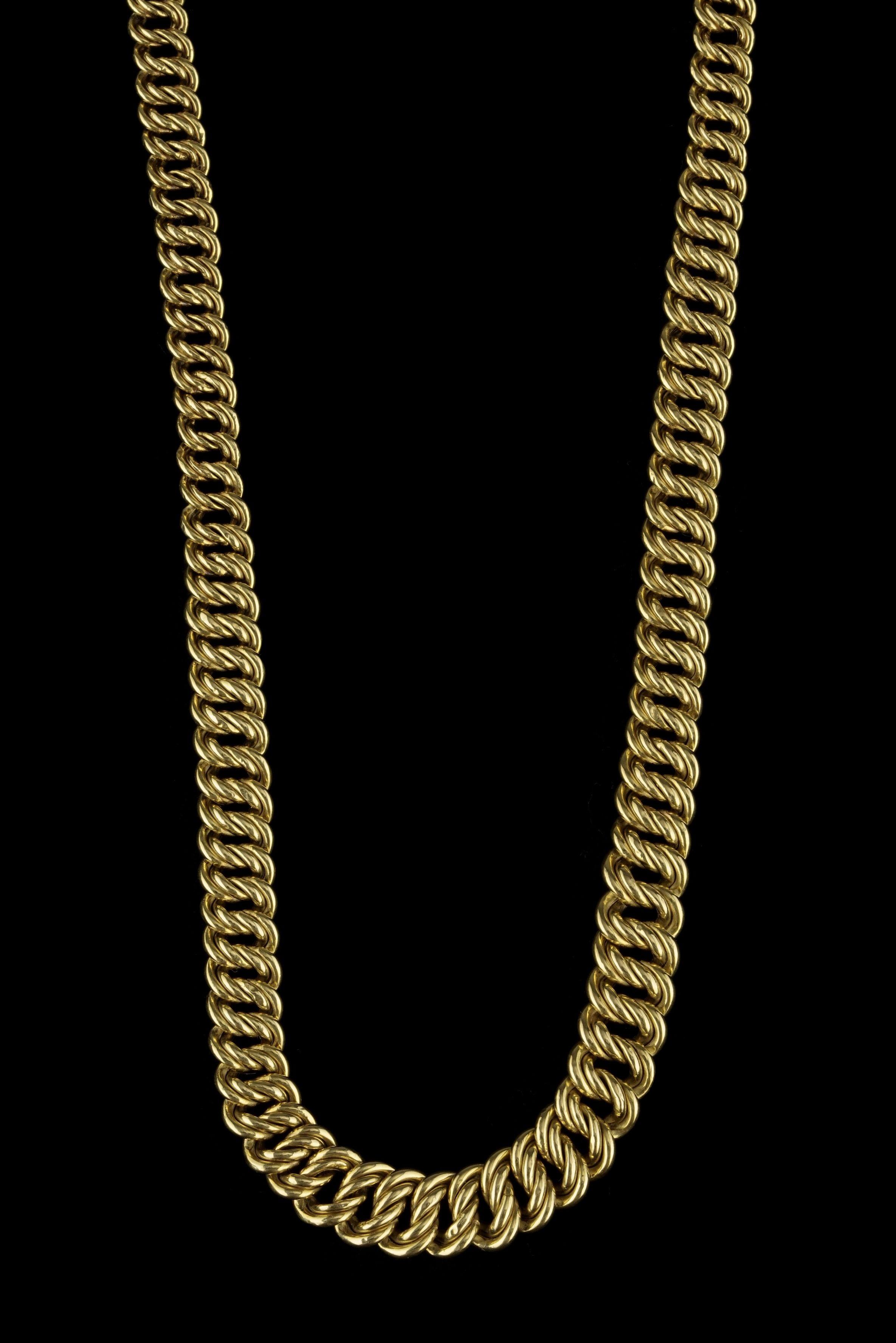 677. Collier double rang à maille torsadée retenant un motif de nœud...