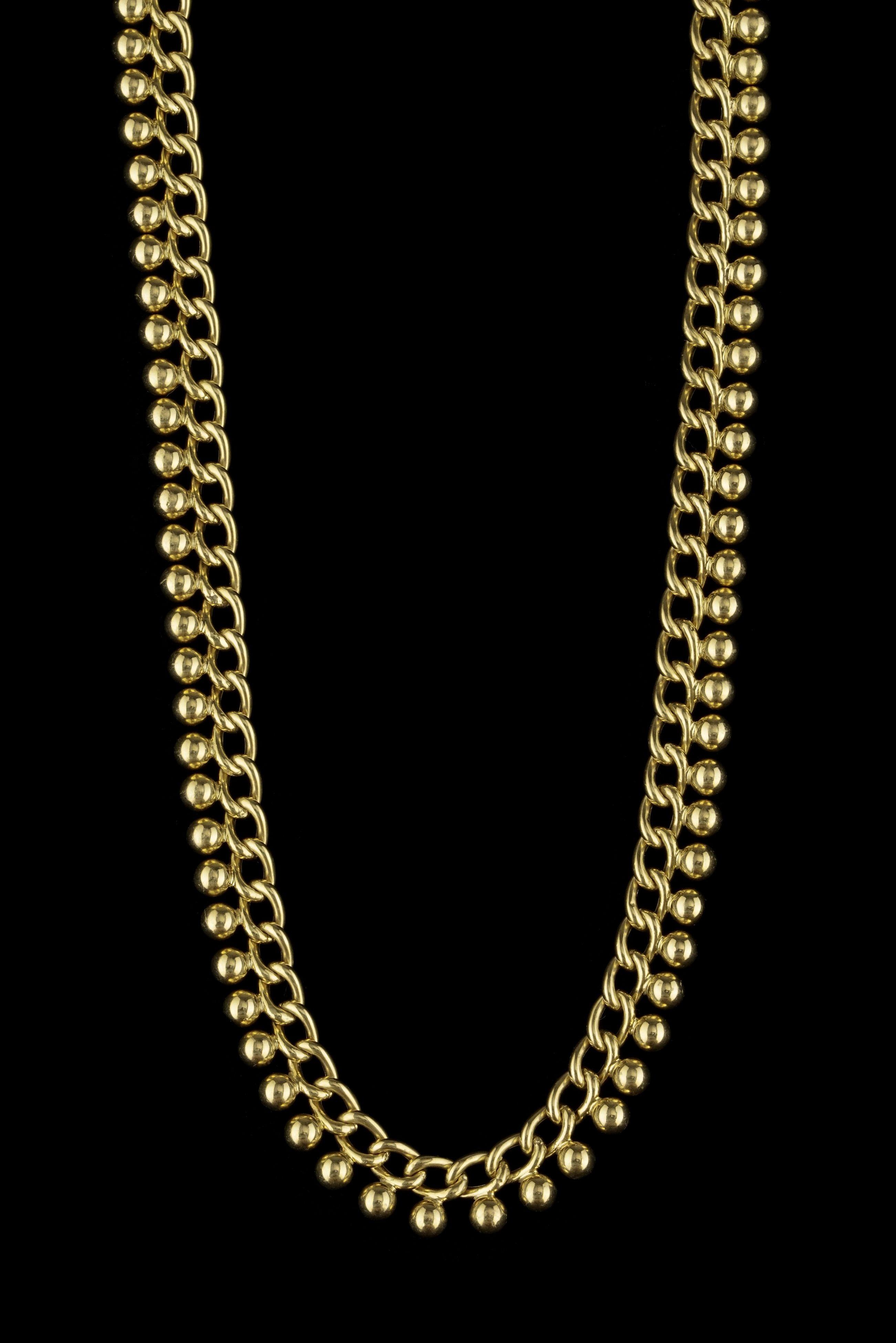 677. Collier double rang à maille torsadée retenant un motif de nœud...