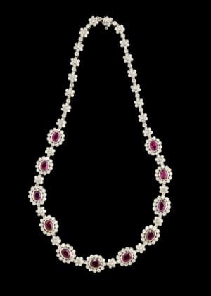 Sertis de rubis taille ovale rehaussés de diamants, or 750, L 60...
