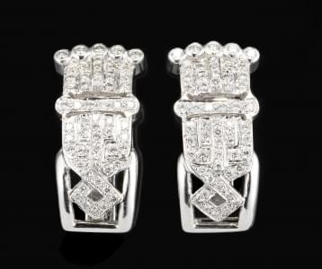 282. Boucles d'oreilles à motifs géométriques ajourés et pavés de dia...