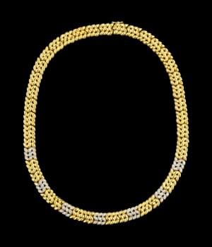 294. Collier tour de cou à maille en épis ponctué de motifs sertis de...